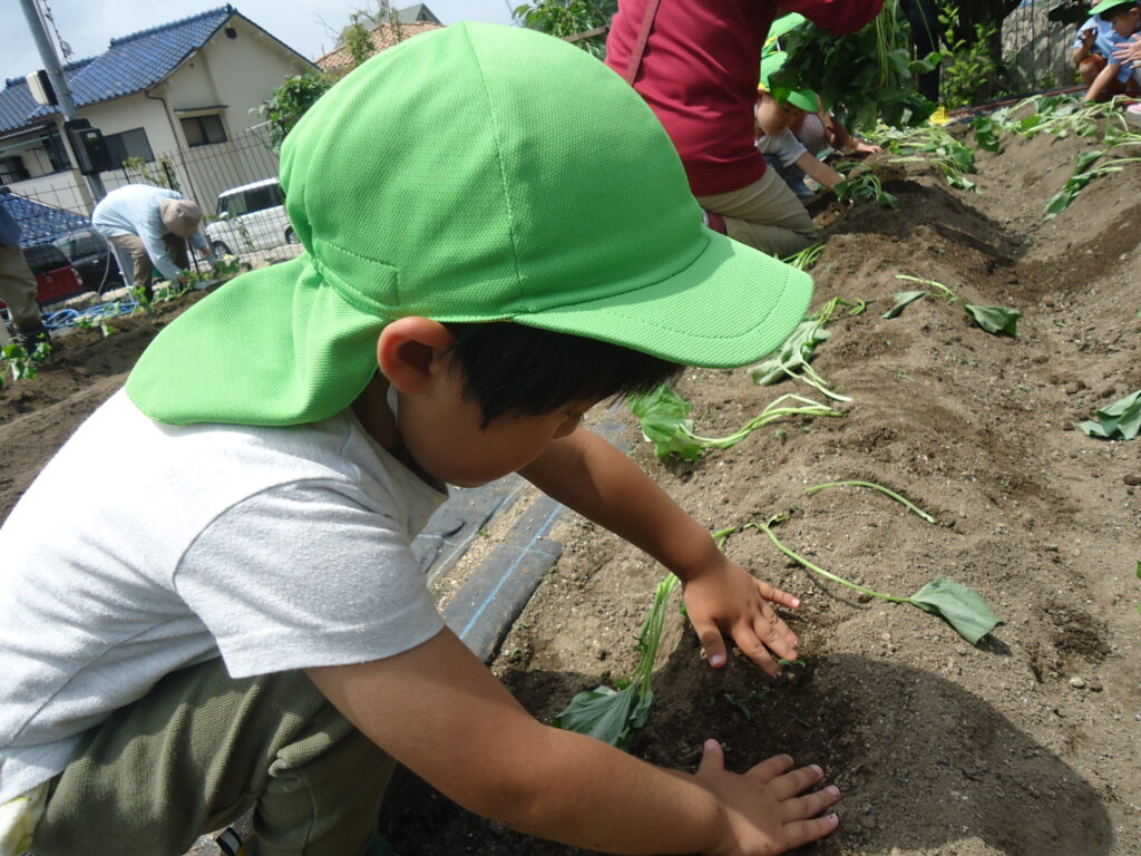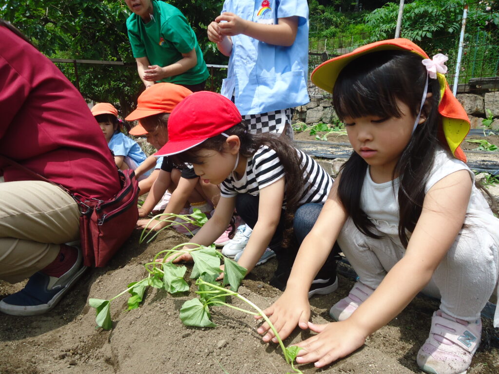今年も芋の苗植えの時期が来ました。各クラス、はりきって畑へ出発!!