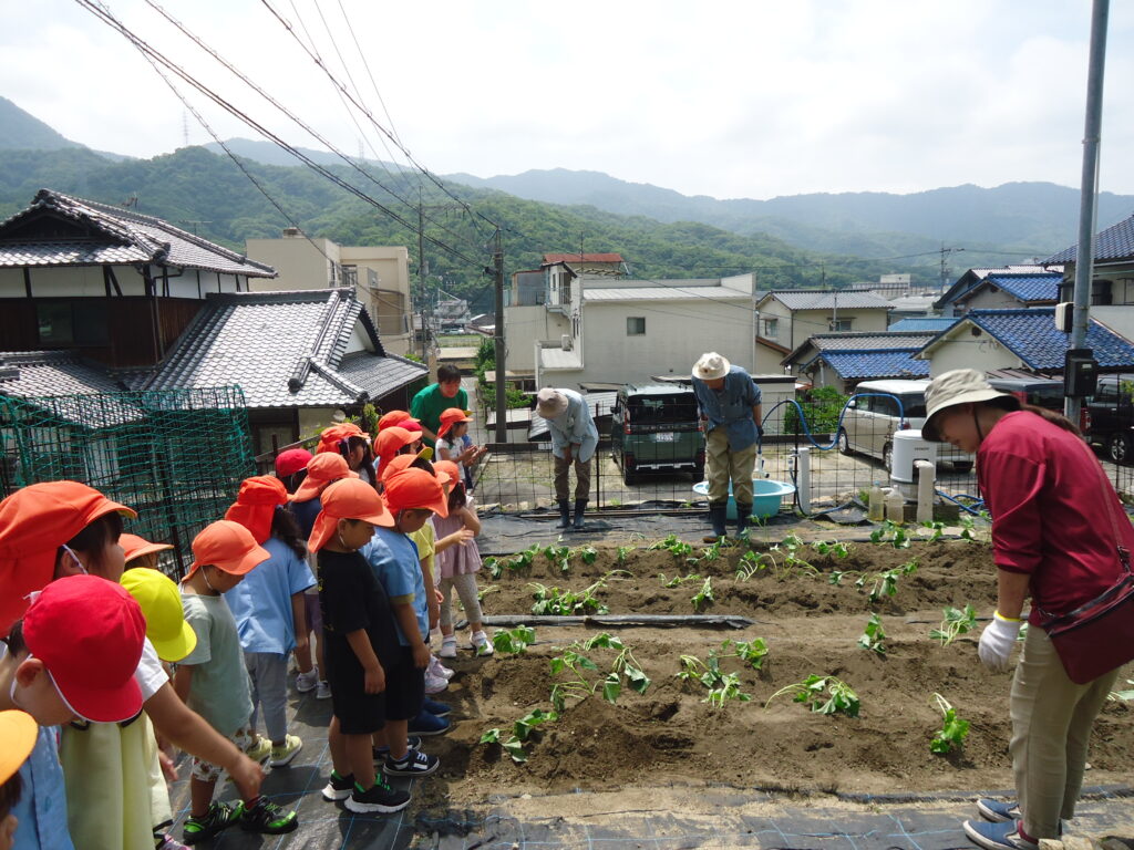 これから苗がどんどん大きくなって秋には立派なお芋が出来る事を願いながら、これからも、お芋のお世話、宜しくお願いしますとご挨拶をし、地域の方にお別れしました。これからはお散歩ついでに苗の観察と雑草抜きにどんどん行きたい思います。(*^-^*)