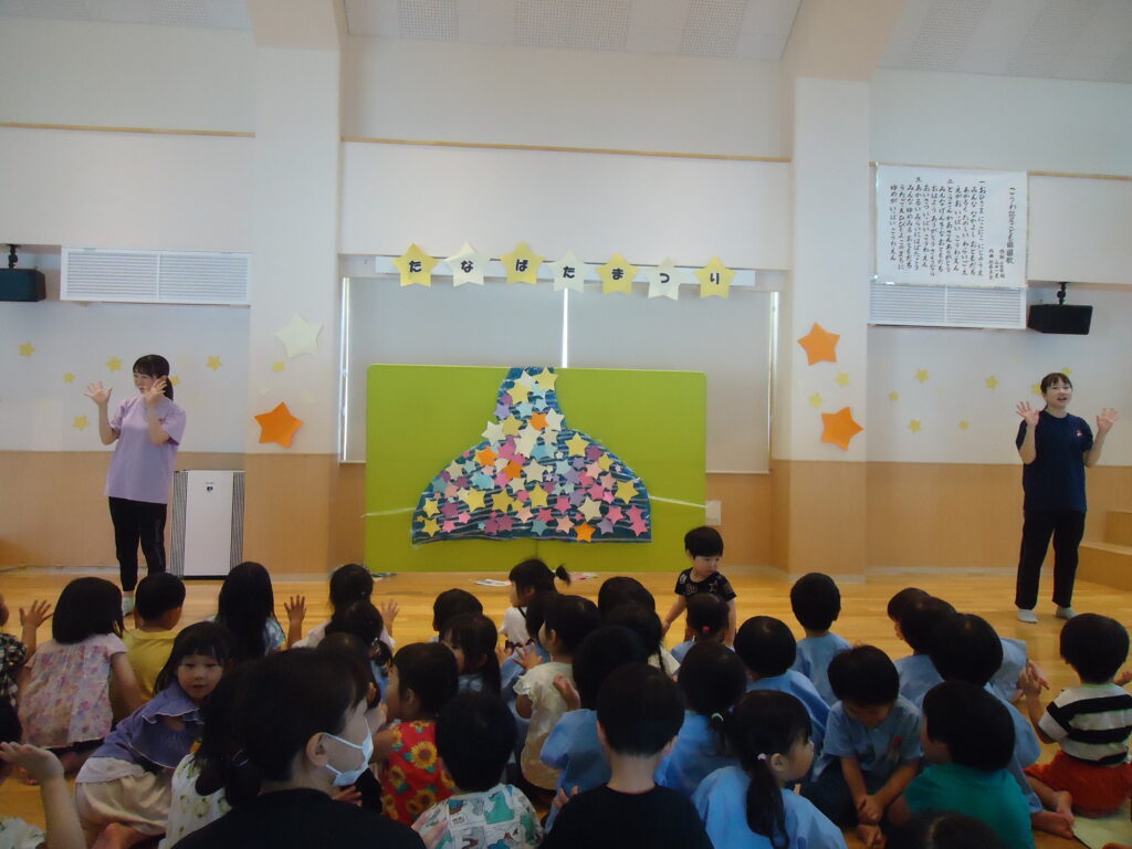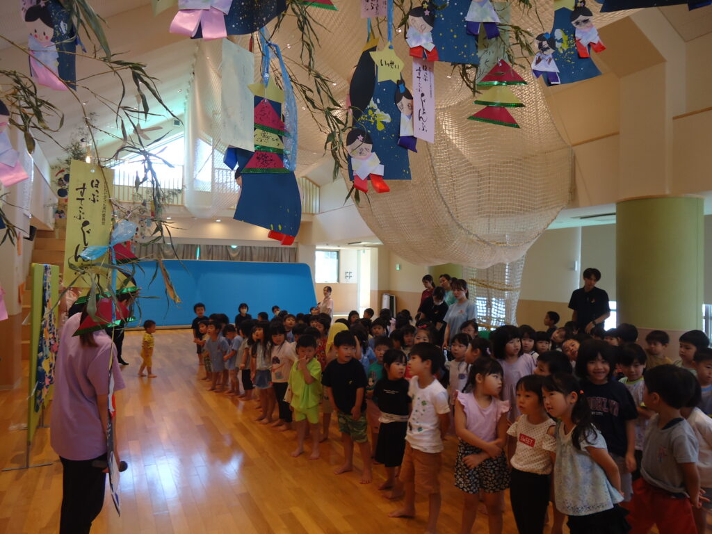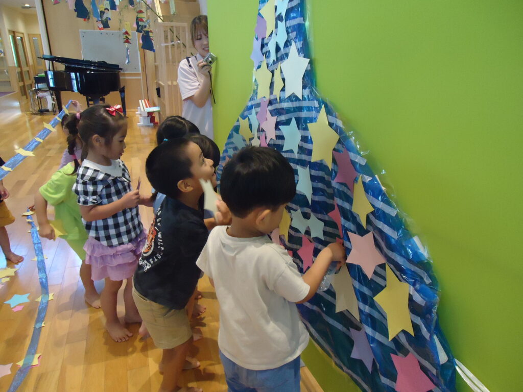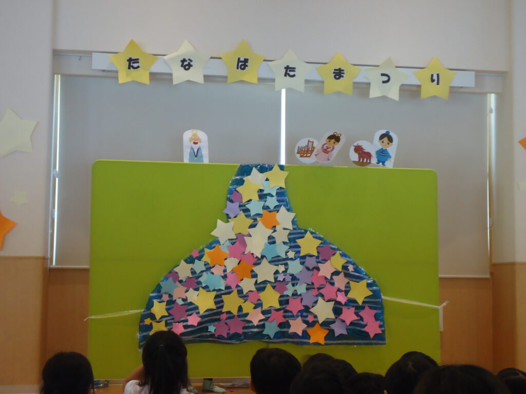 最後はみんなで七夕の日の夜に織姫と彦星が仲良く会えますようにと願いながら「たなばた」の歌を歌いました。