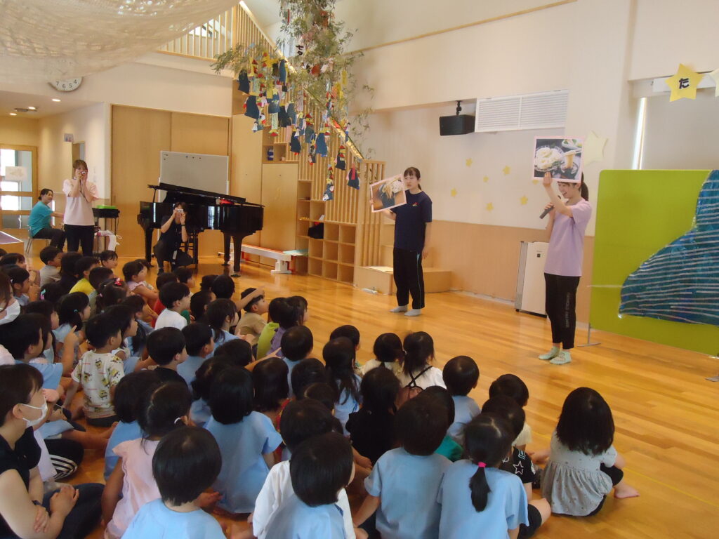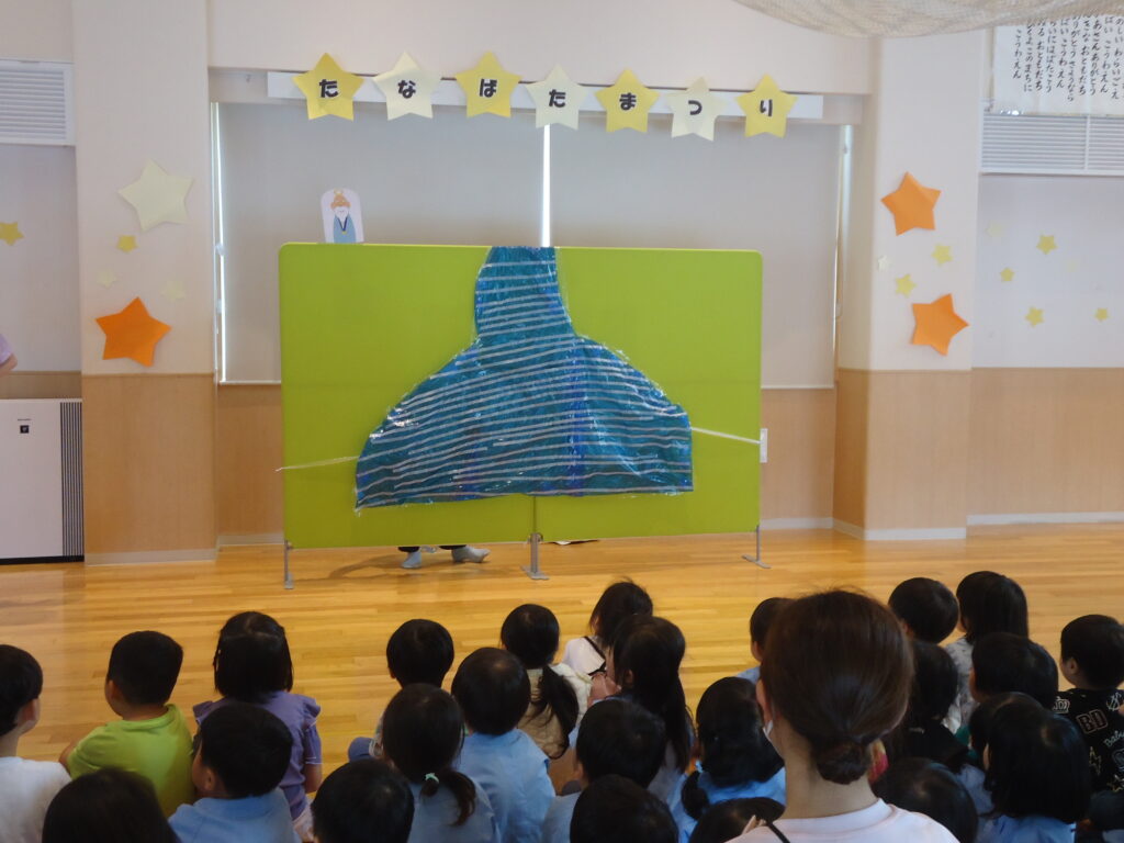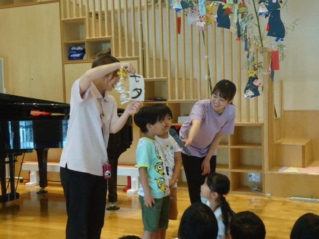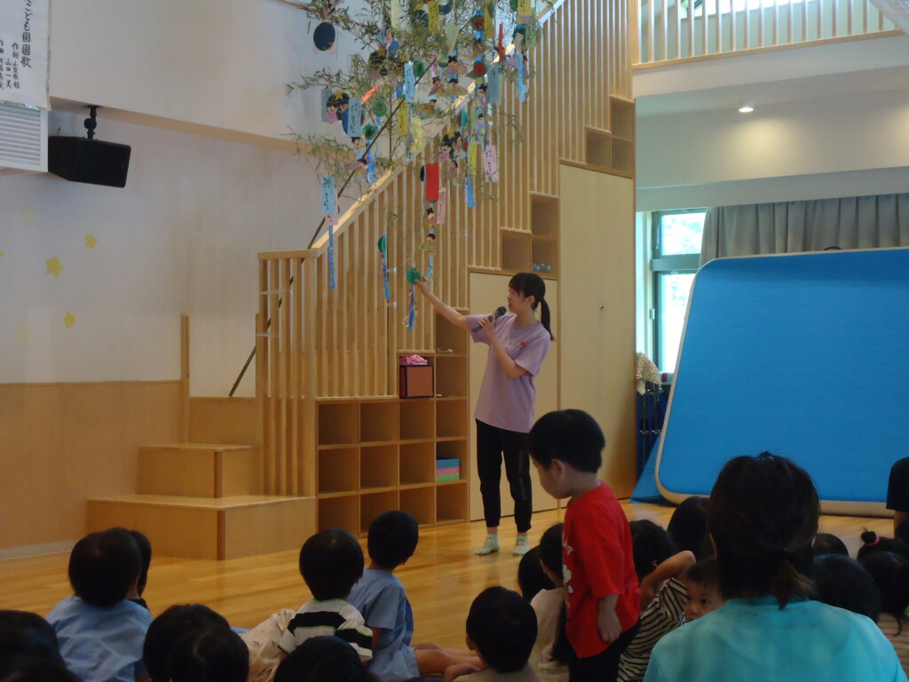 最後はみんなで七夕の日の夜に織姫と彦星が仲良く会えますようにと願いながら「たなばた」の歌を歌いました。