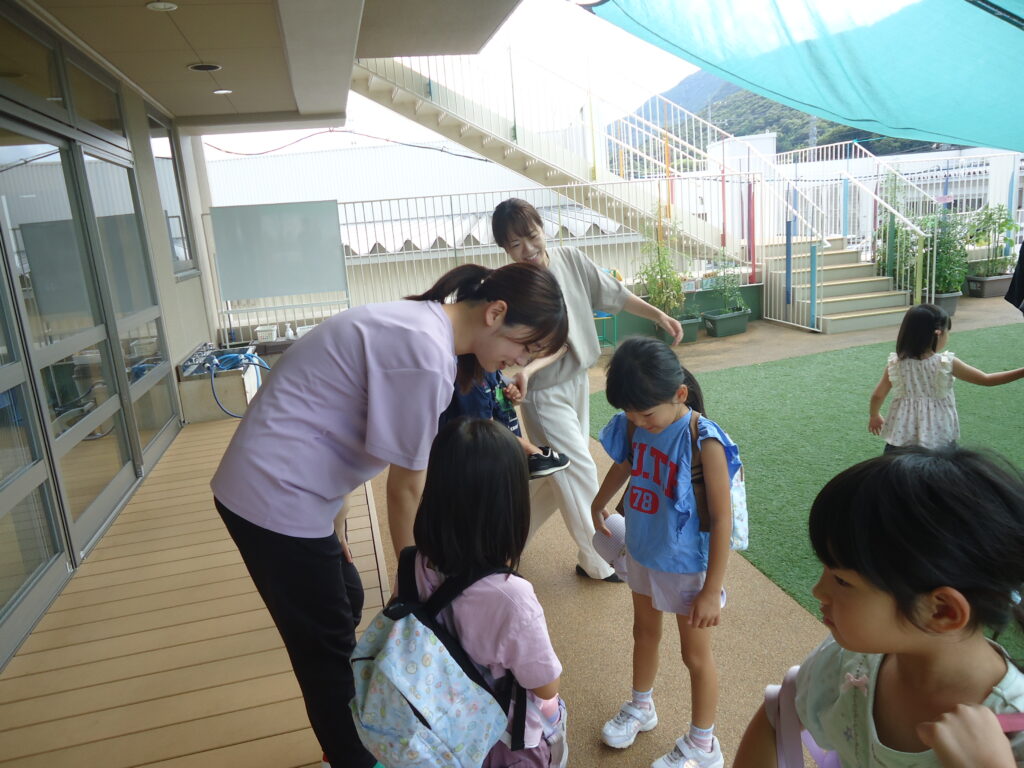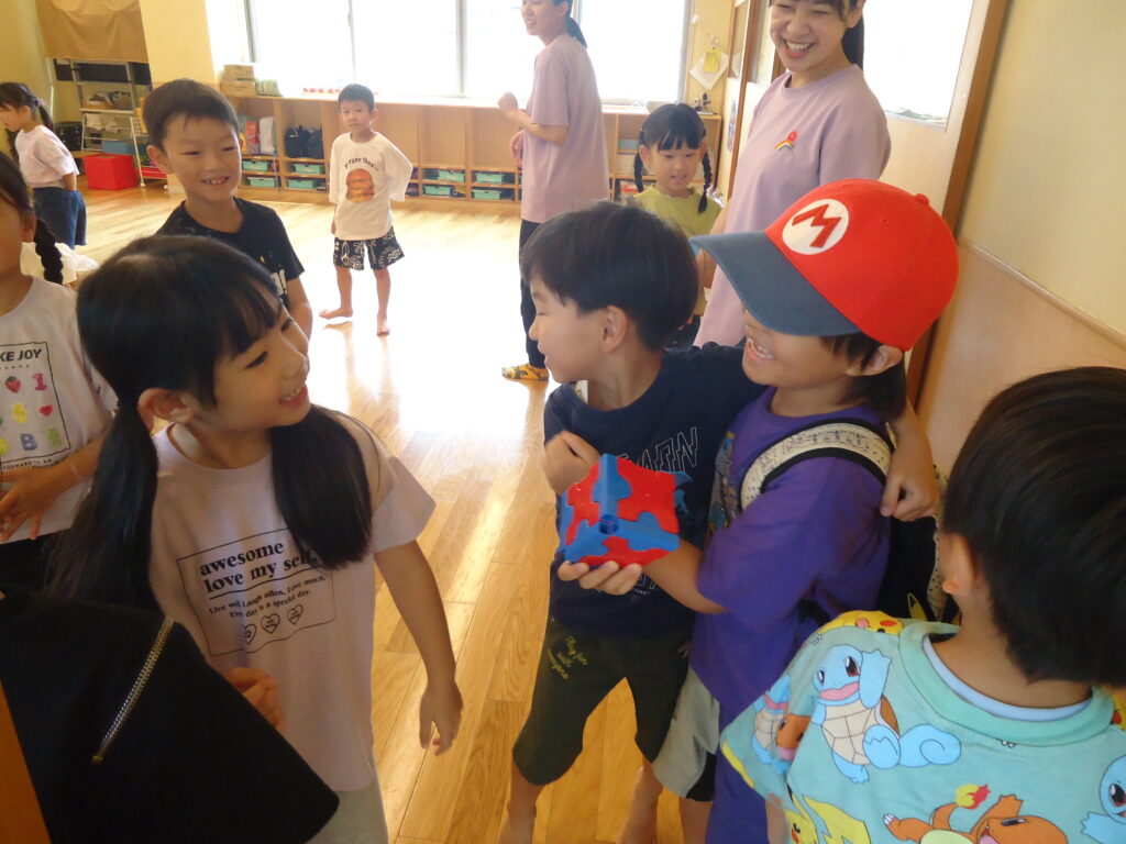 8月24日(土)に今年卒園した、子ども達が遊びに来てくれました( ;∀;)久しぶりの園に少し緊張していたようですが、大好きな先生や友達が出迎えてくれると緊張もほぐれたのか笑顔が(*^▽^*)