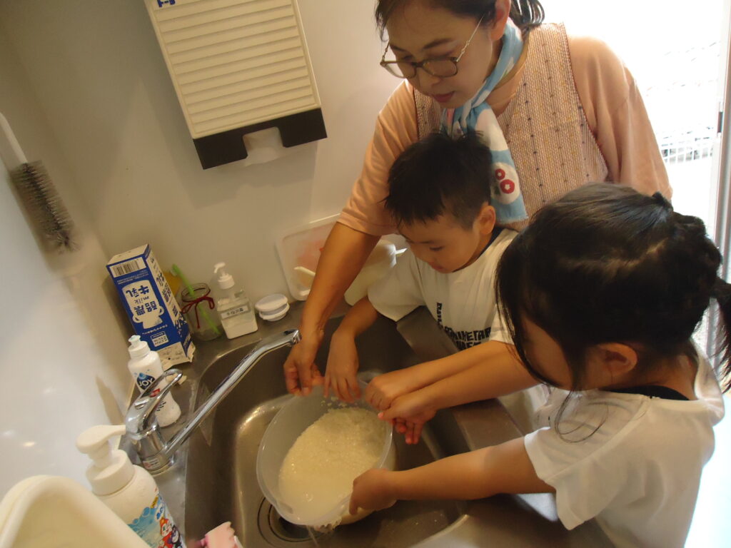 自分達で食べるお米を園長先生に教わりながら、丁寧にお米も研ぎました✨✨