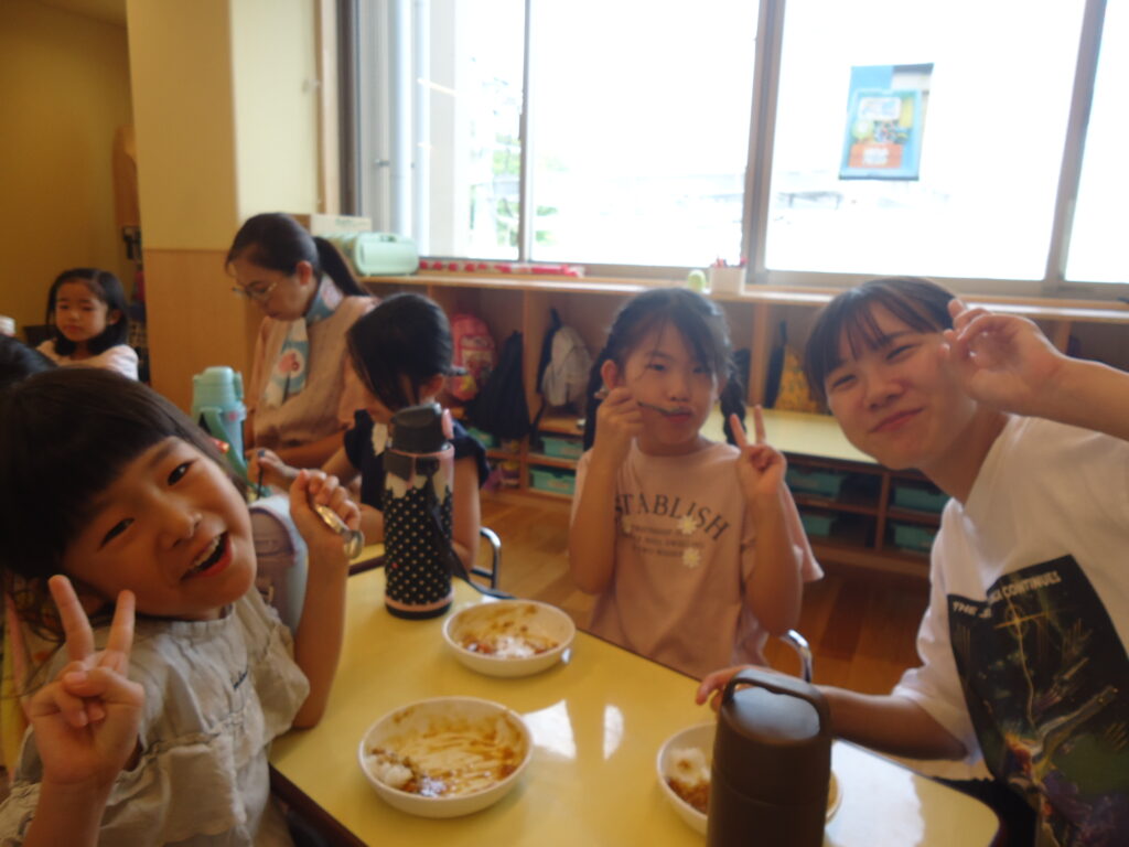 「気持ち良かったね!」と水遊びをとっても満喫したようです。そして・・・・いよいよ待ちに待ったカレー🍛の時間です!!