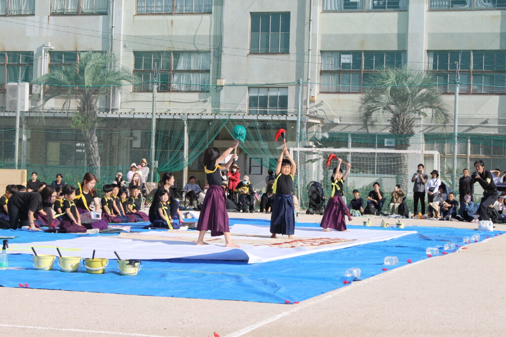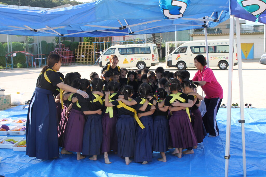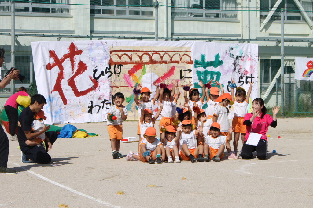 プログラム① 年長組さんによる、書道パフォーマンス!!テーマは、「花ひらけ わたし彩に 夢ひらけ」 です!!パリオリンピック開催の年でもあり、輝いたオリンピック選手たちのように最後まで頑張ること!勝っても負けても、出来ても、出来なくてもやりきること!を目標に頑張ってきました。そして何より、一人ひとり、個性ある子ども達がこの運動会で輝いて欲しい、みんなで力を合わせて盛り上げ、やりきる!そんな思いを胸に職員と子ども達がひとつになり、頑張りやりきりました(´;ω;‘)
