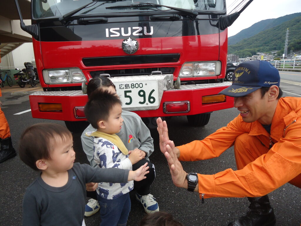 そこへ、乳児組さんも消防士さんに会いに来て、優しくハイタッチ✋(*’▽’)