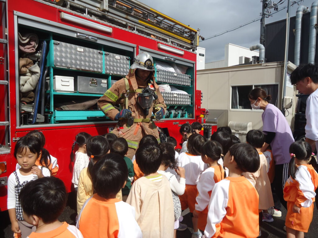 10月23日(水)に安芸消防署の消防士さん立ち合いのもと避難訓練を行いました。給食室から火がでたとの想定で、みんな各クラスから1階へすみやかに避難することが出来ました。