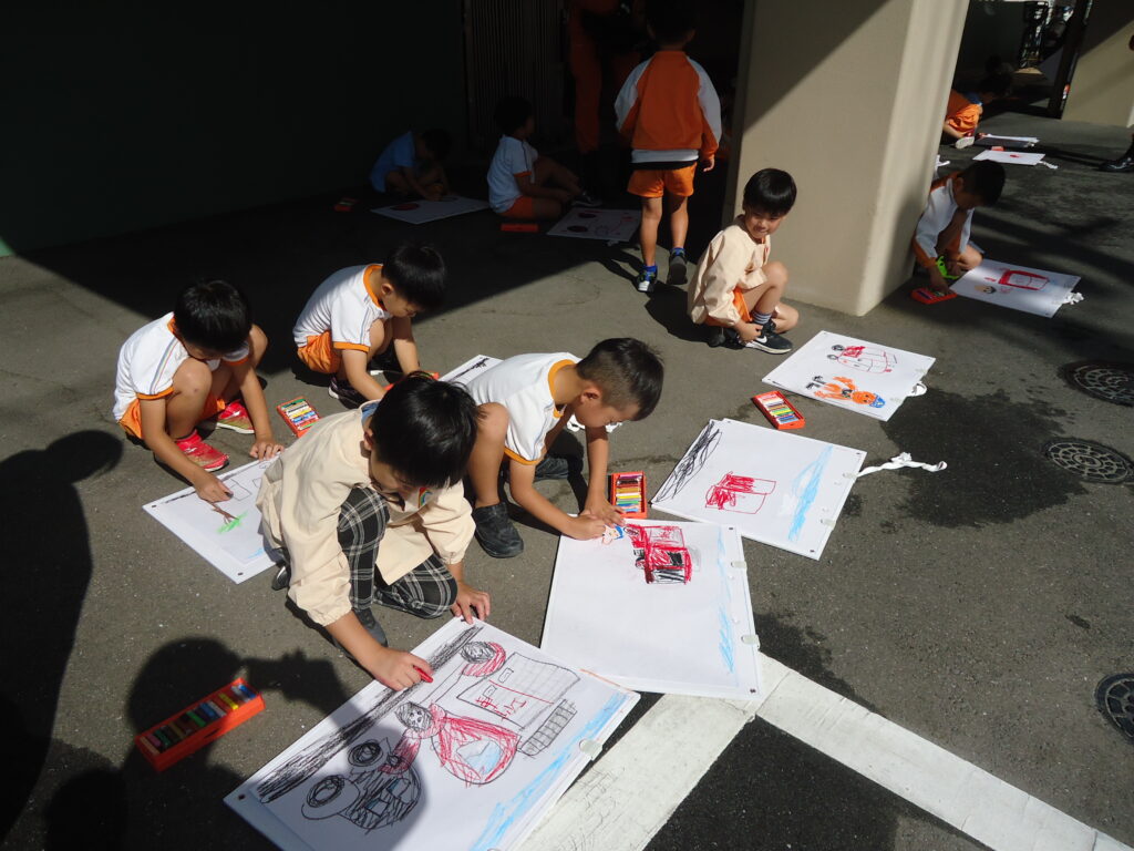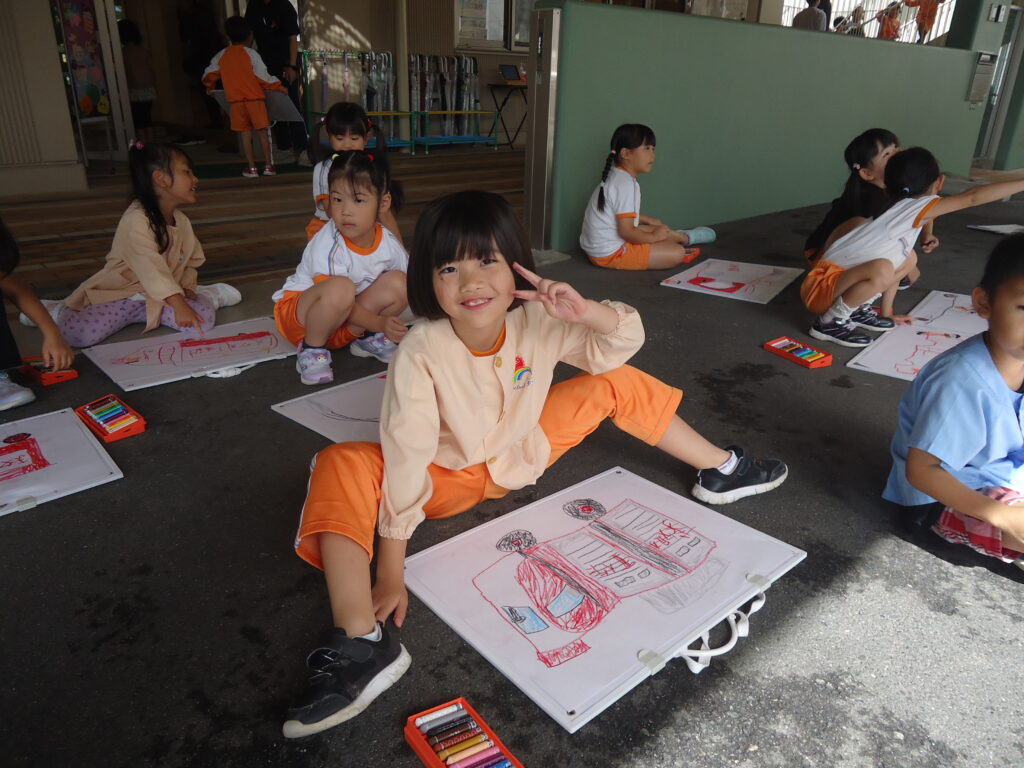 間近で見る消防車がかっこよくて、みんな張り切って、長い時間集中して絵を描くことが出来ました。👏👏