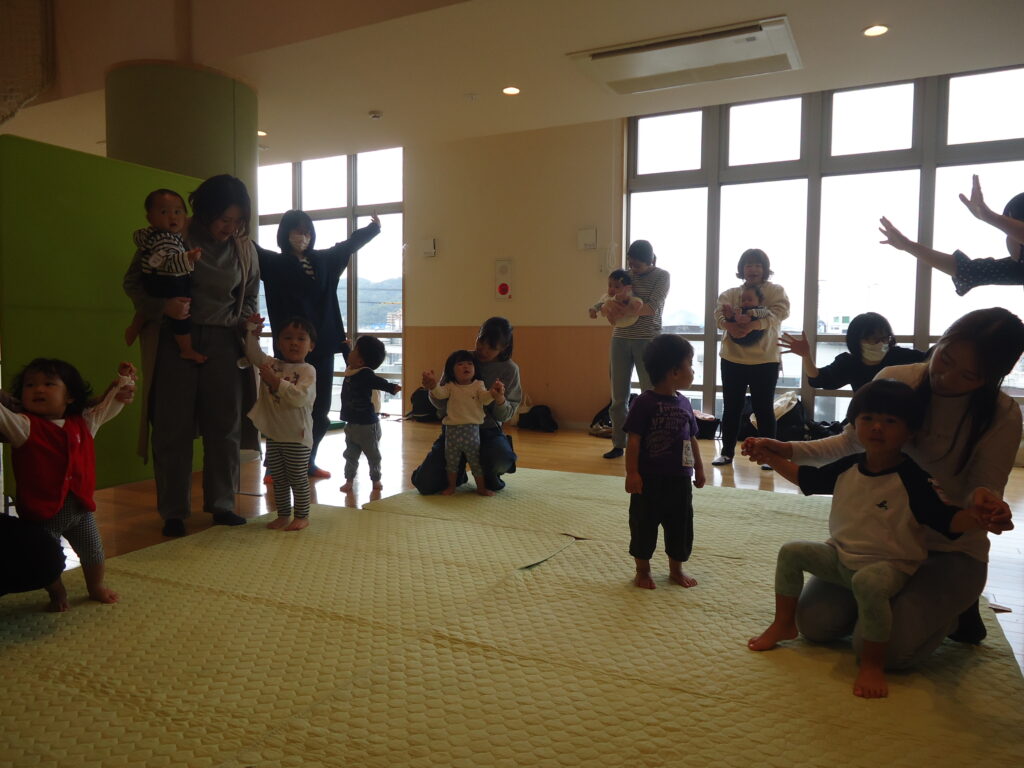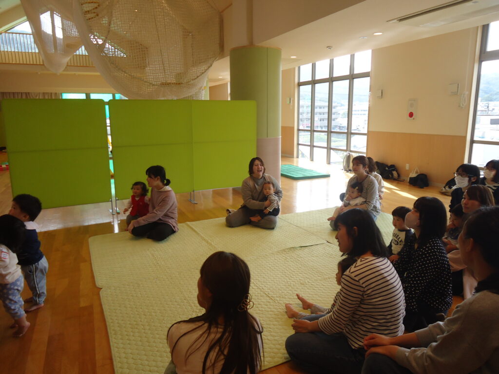 お片付けをした後は、秋の歌や手遊び、大好きな大型絵本📚「もりのおふろ」をみんなで見ました。