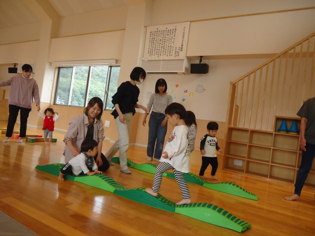 10月24日(木)に予約園庭開放「おひさまくらぶ」がありました。今月は運動会にちなみ、しっかり体を動かして遊ぼう!!ということで、色々な運動用具を用意し、たくさん遊んでもらいました。