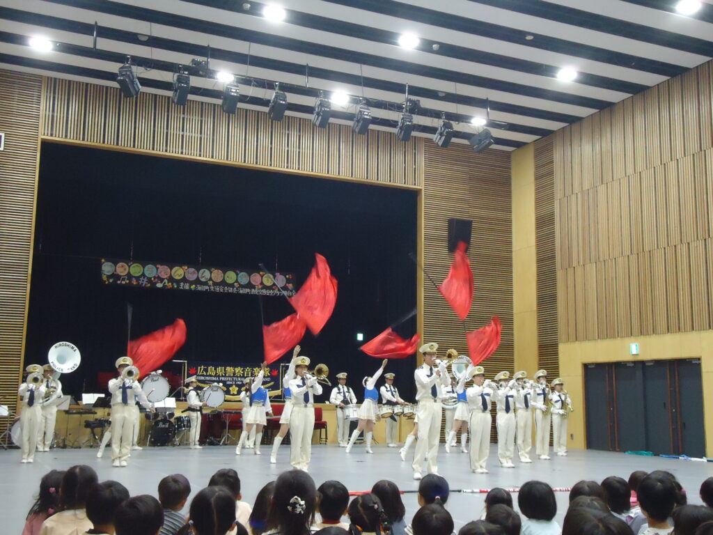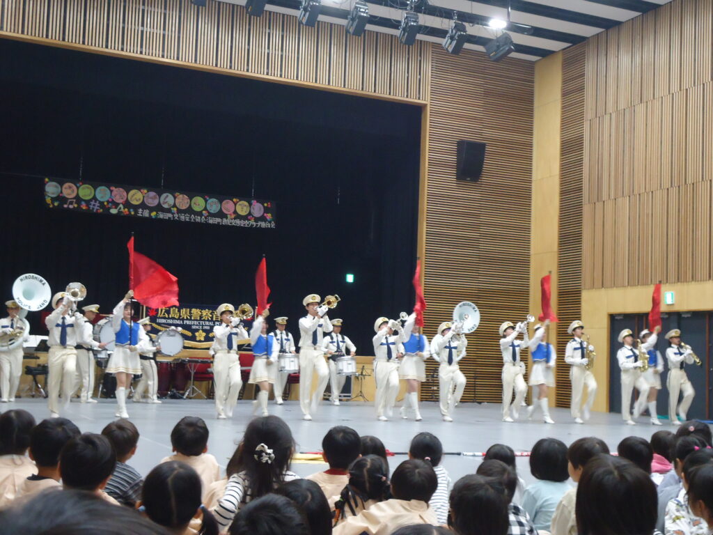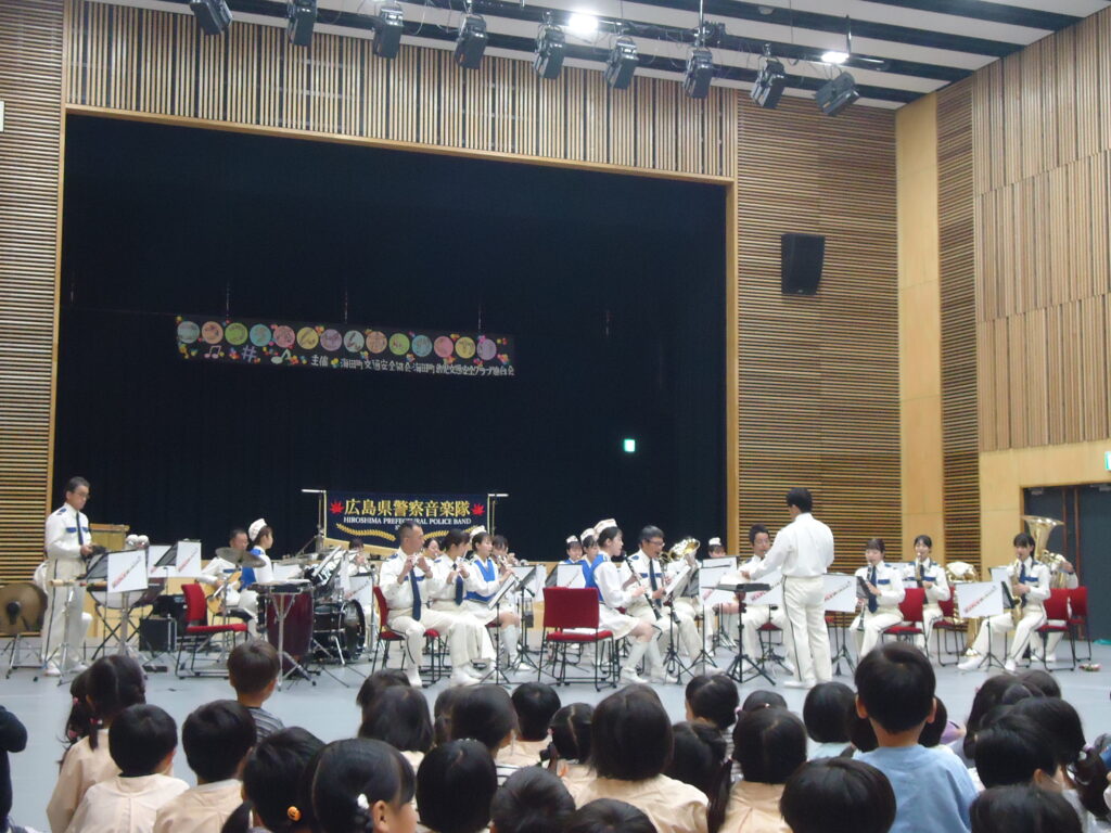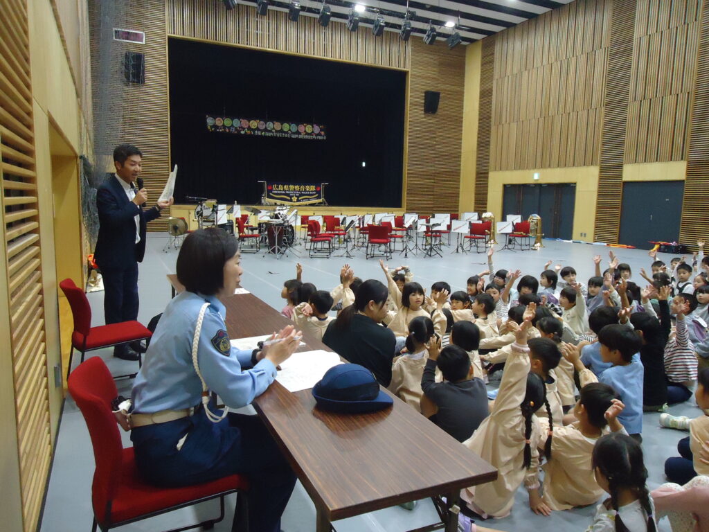 10月29日(火)に織田幹夫スクエアで交通安全音楽会が行われ、海田町の保育園や幼稚園、そして認定こども園の年長組さんが参加しました。
