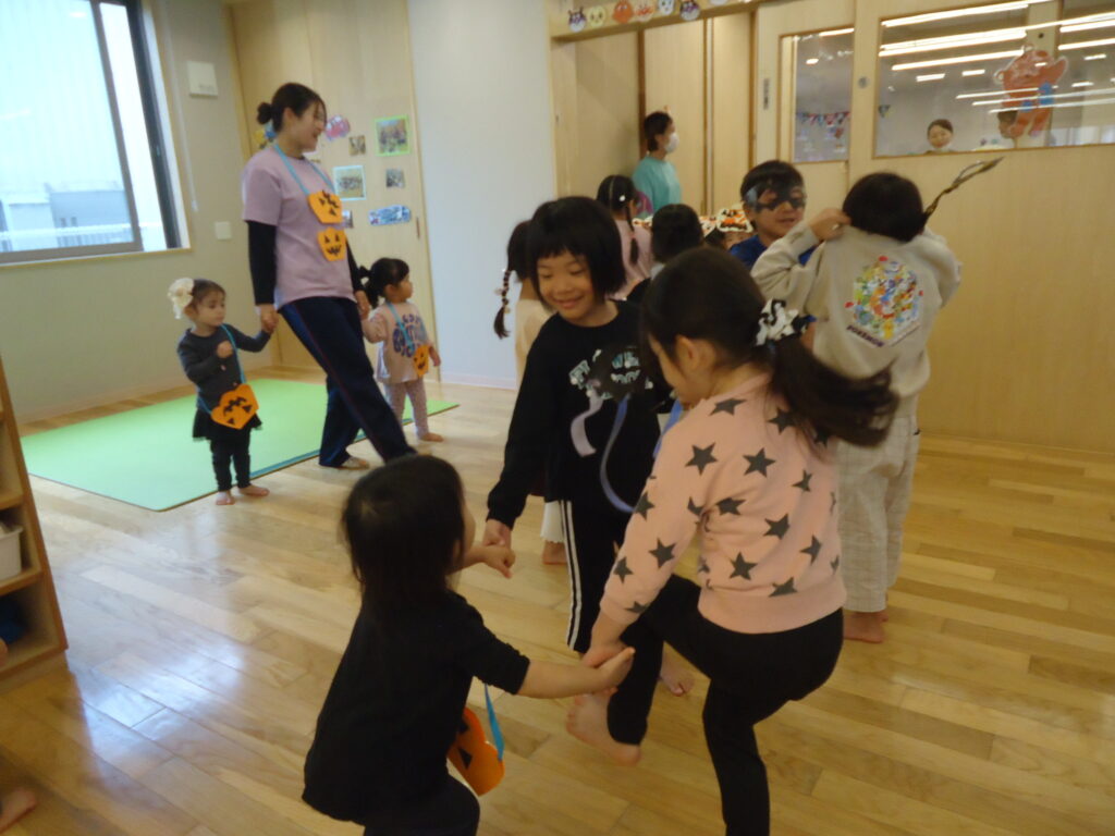 1歳児にクラスにもお邪魔して、「今夜はハロウィンナイト」を一緒に踊り1歳児のお友だちは大喜び(^^♪