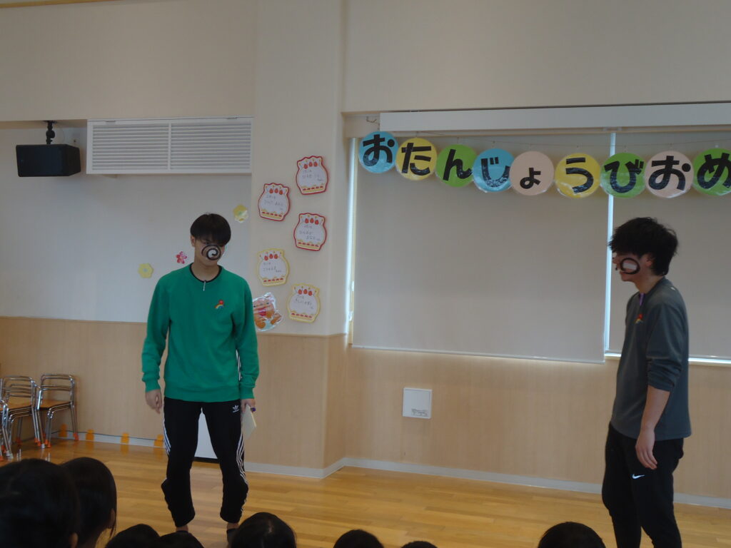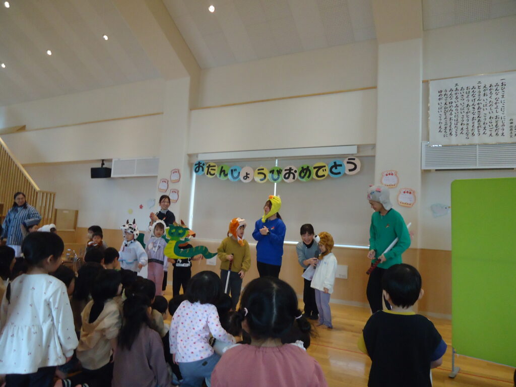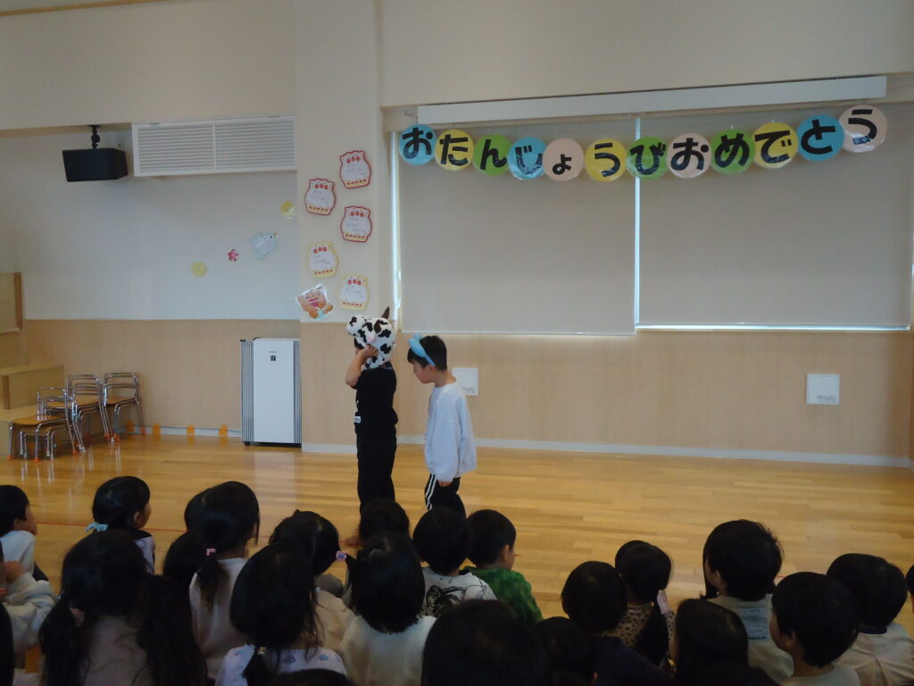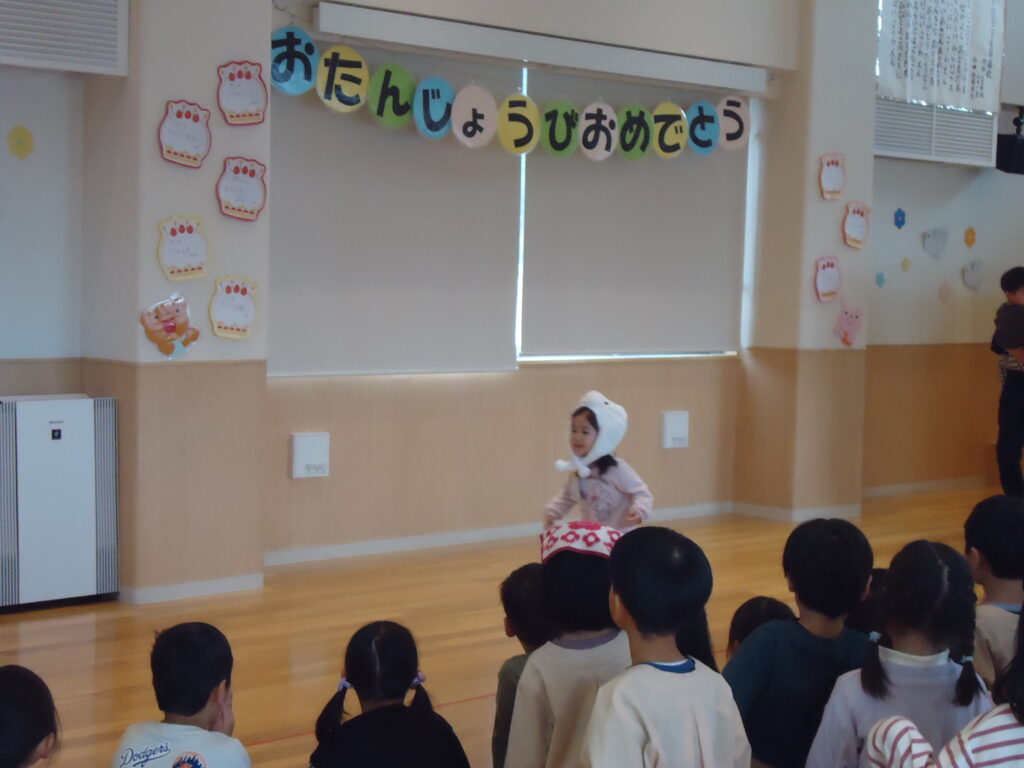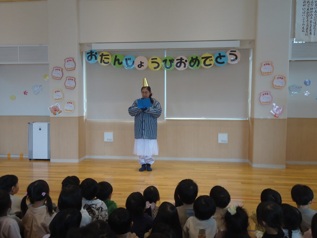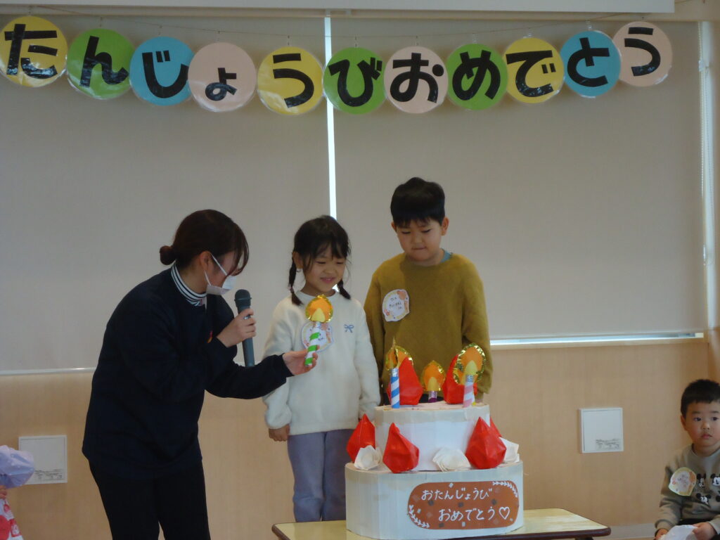 1月17日(金)に1月生まれのお誕生日会がホールで行われました。まずは一人ひとりお誕生日のお友だちを紹介!