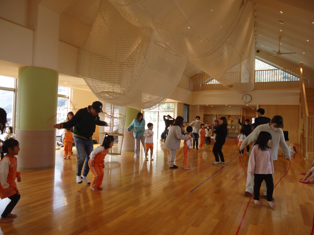 今度は親子で縄跳びも盛り上がり、二人で息を合わせ、引っかからず跳べた最高記録はなんと36回!!凄い記録です👏👏