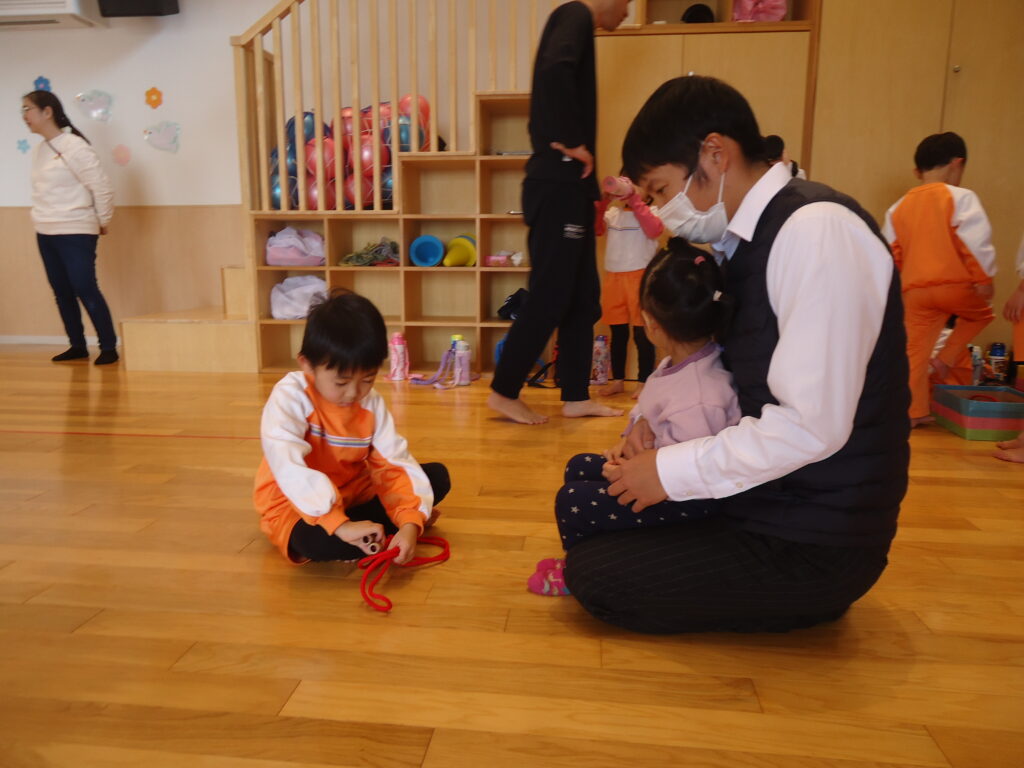 縄跳びを片付ける時はいつも自分で結び、しまっているので、今日はその様子もしっかり見てもらいました。(*^▽^*)素敵ですね!!