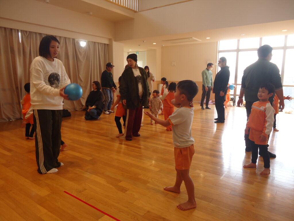 最後は二組の親子ずつになりボール渡しっこゲーム。上手に落ちないように4人で回しながら渡すのはドキドキしたけど、お家の方と一緒に出来てとっても喜んでいた子ども達。たくさんの保護者の方に参加して頂き、子ども達も大変楽しい笑顔いっぱいの参観になりました。お忙しい中、参観にお越しいただきありがとうございました💓