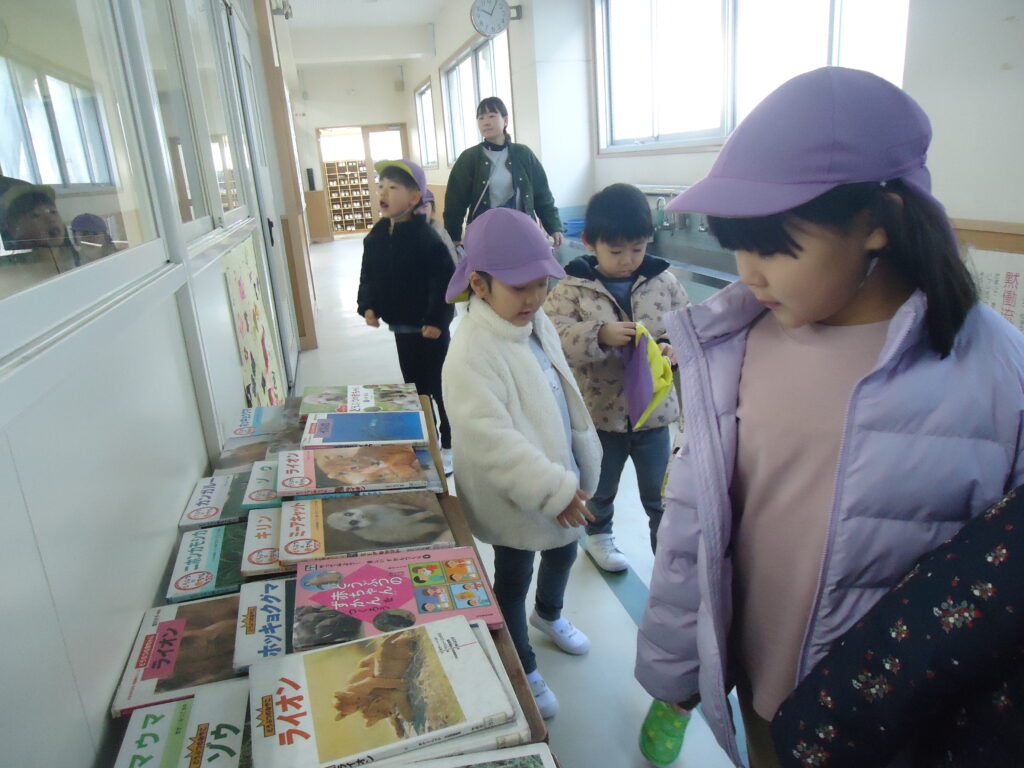 ろうかには、図鑑など、図書室にある本が紹介してありました。