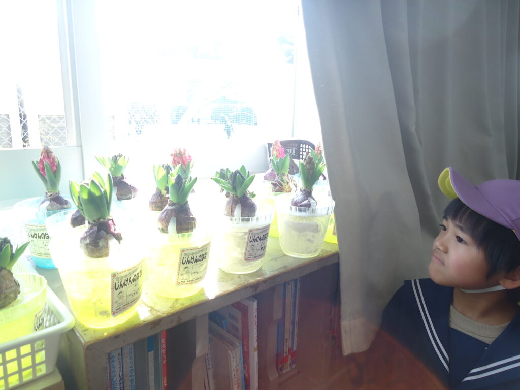 窓際には、みんなが育てているヒヤシンスもあり、とても綺麗でした。