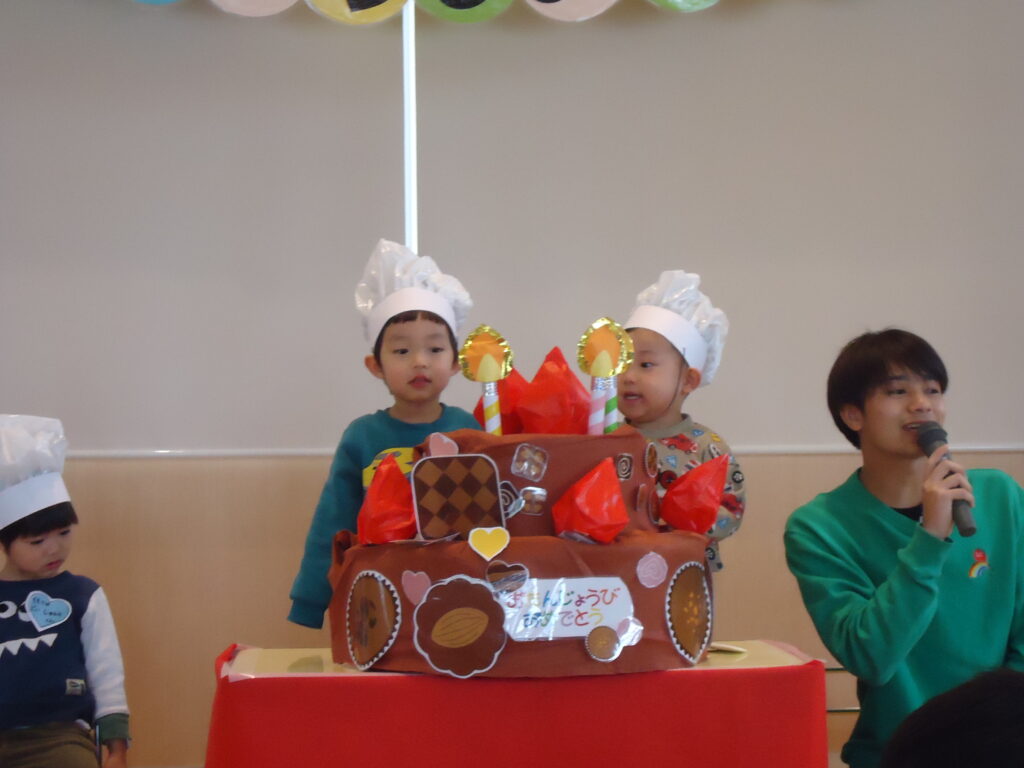美味しそうなチョコレートケーキの完成です👏👏いよいよ、2月生まれのお誕生日会が始まりますよ🎂