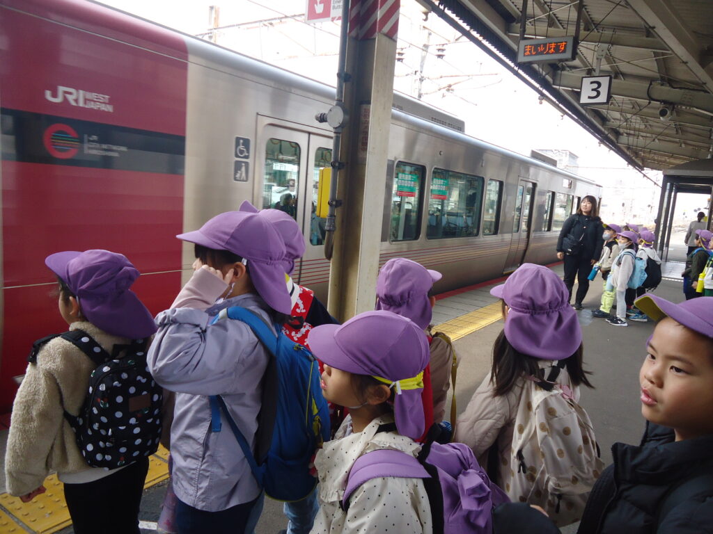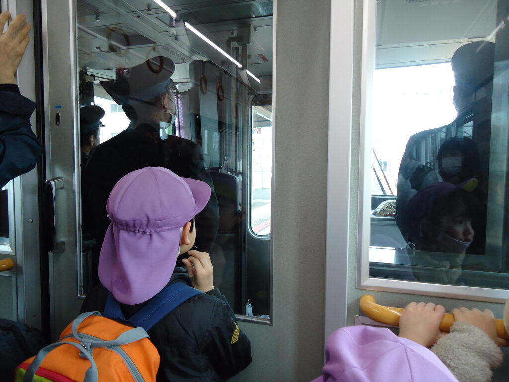 「電車はどっちから来るのかなぁ・・・?」など素朴な疑問が飛び交う中、みんなが乗る電車が到着です。