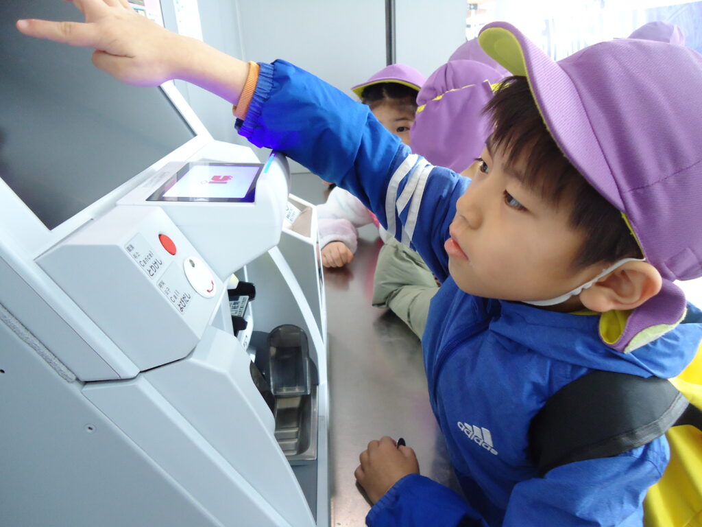 次はアストラムラインに乗る為、同じように切符を買うのに挑戦!!今度はもう買い方がわかるので、お金をもらうと先生が傍にいなくてもちょっと背伸びしながらも上手に買うことが出来ましたよ👏👏