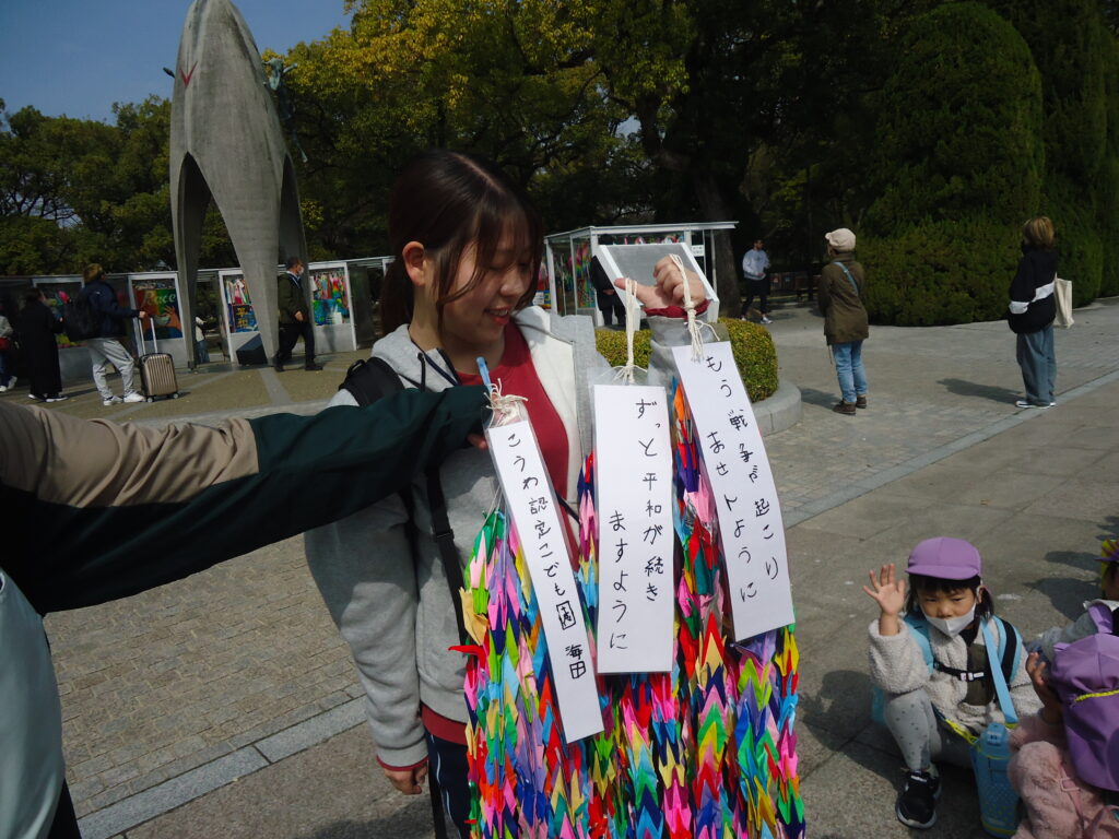 捧げた千羽鶴を見ながら、みんなで平和が続きますように・・・・と改めてお祈りしました。🕊