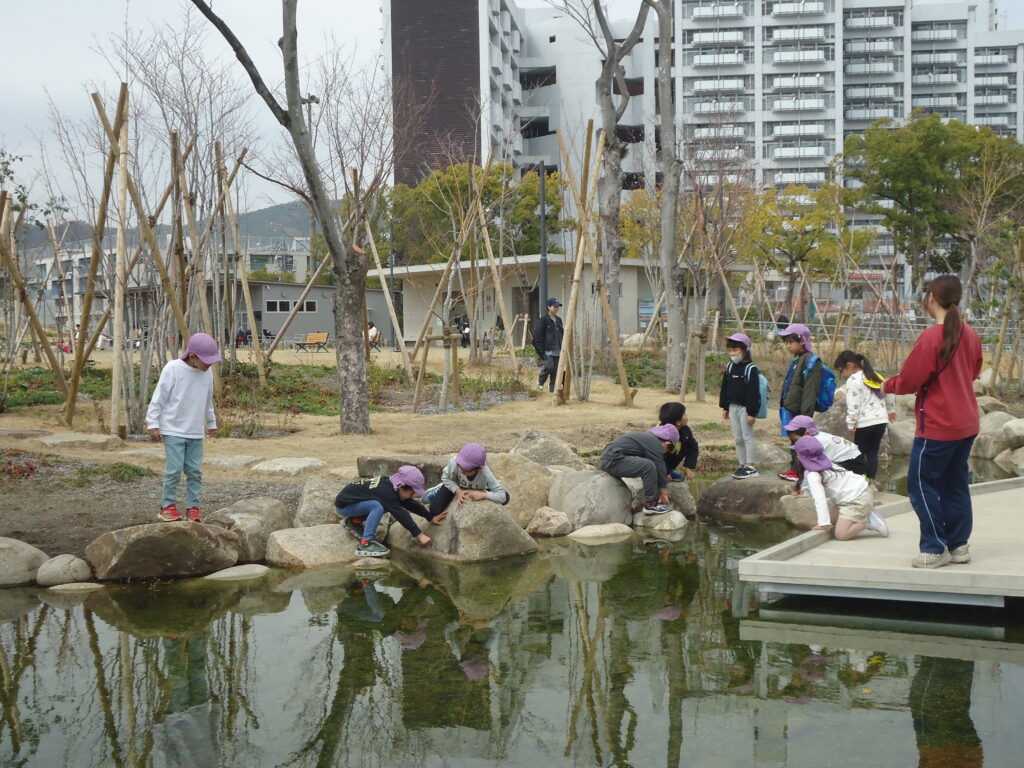 池も見つけ、何か生き物いないかな・・・・?とみんなで虫探し!!「タニシ、見つけたよ!」と教えてくれた子も(笑)