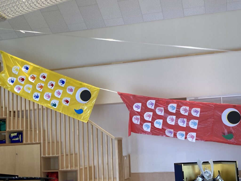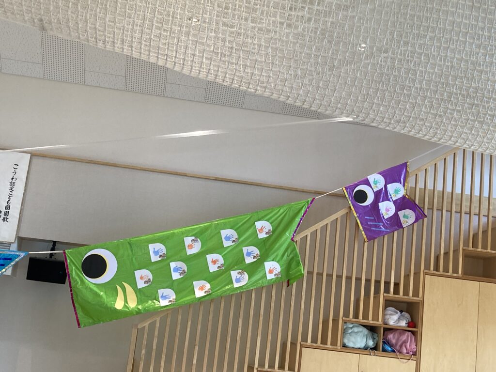各クラスで作成したこいのぼりが3階ホールで気持ち良く泳いでいますね!