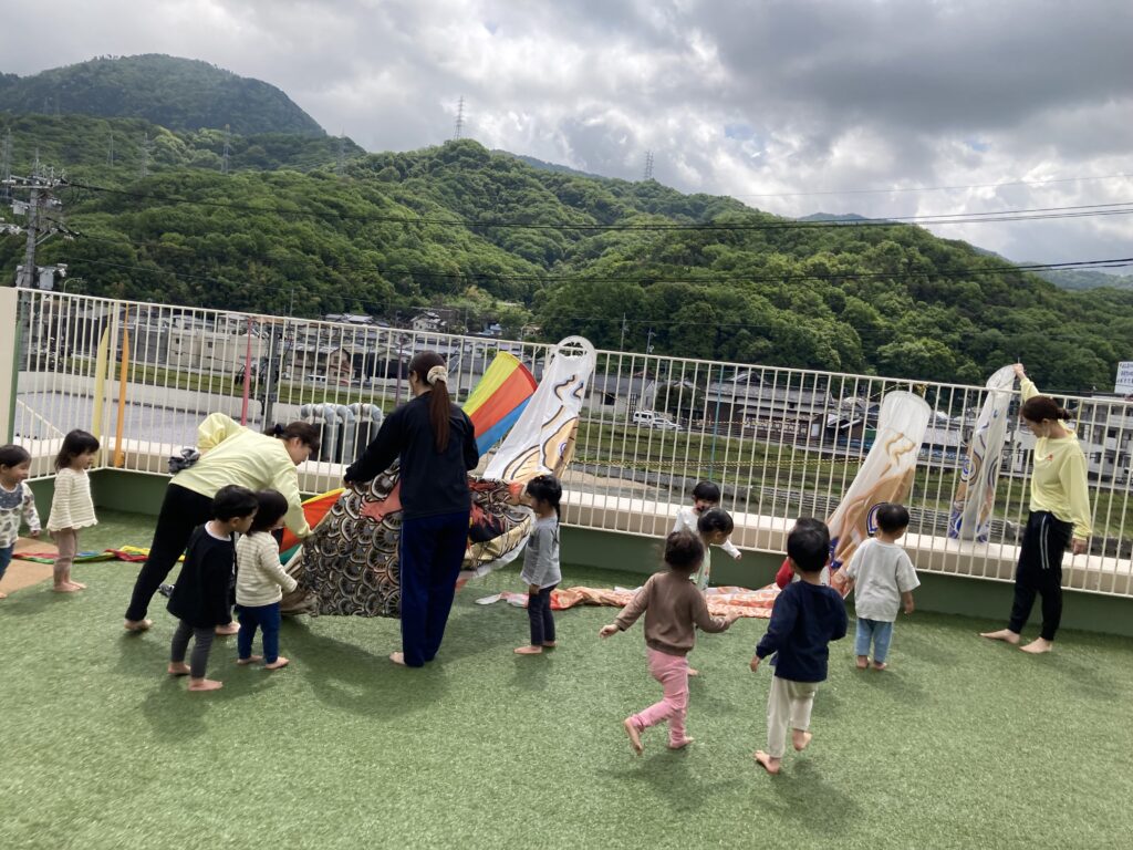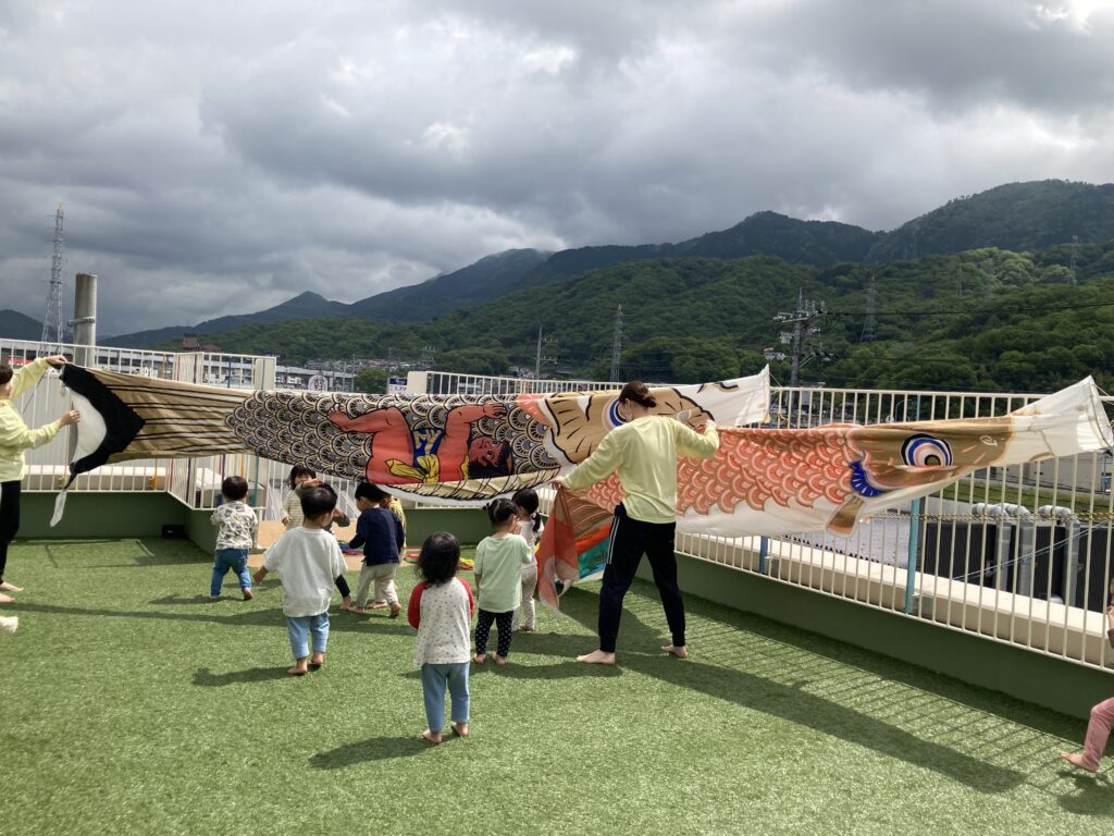 3階園庭で泳いでいるこいのぼりを近くで観察!