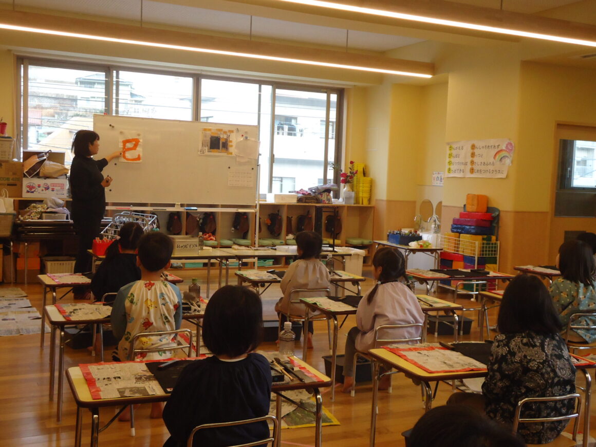 2月6日(木)年長組さんの書道参観がありました。毎週木曜日にあるお習字の時間が大好きでいつもはりきってしてい…