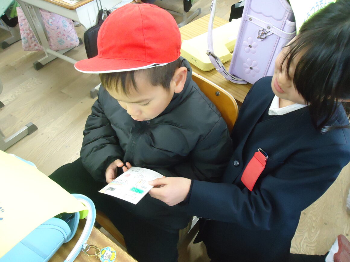 2月18日(火)に年長組さんが海田東小学校へ遊びに行かせてもらいました。 先日、zoomを使って1年1組のお…