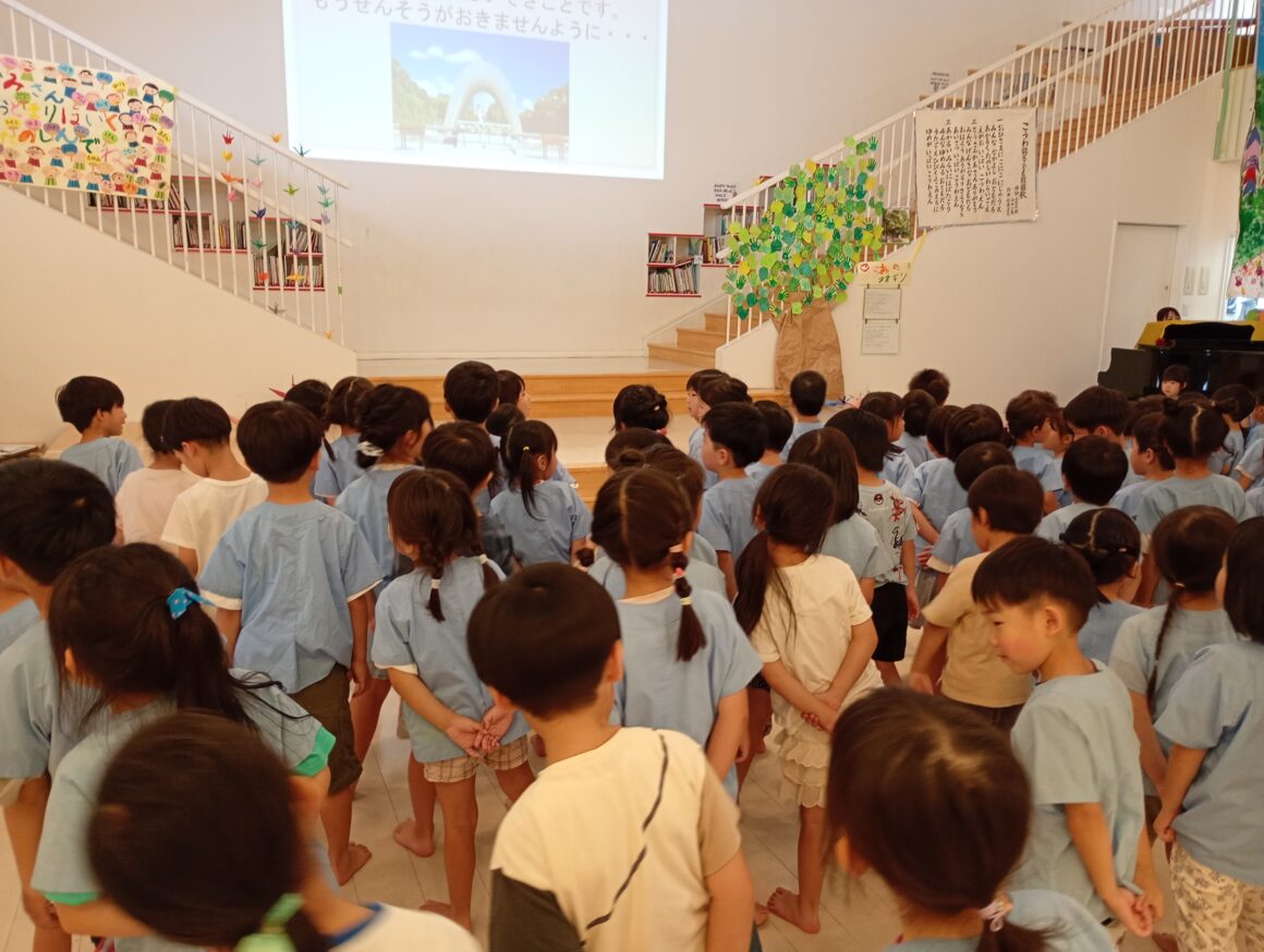 今日8月6日は「平和記念日」。こうわでも8時15分、一斉にサイレンが鳴り始めると、みんなで手を合わせて黙とう…
