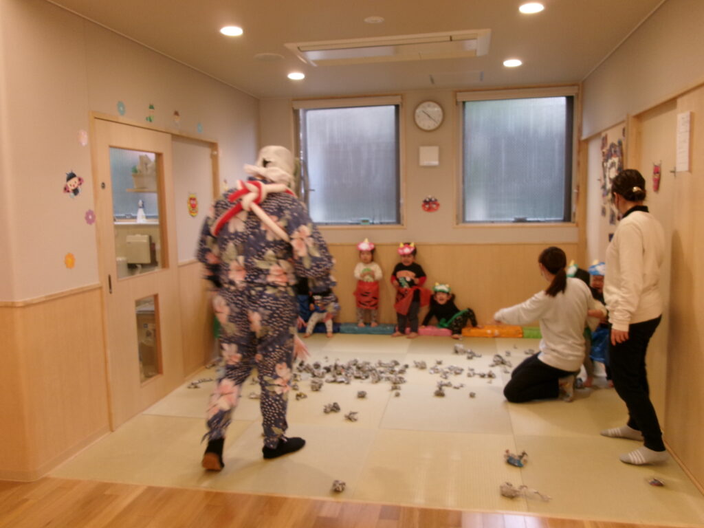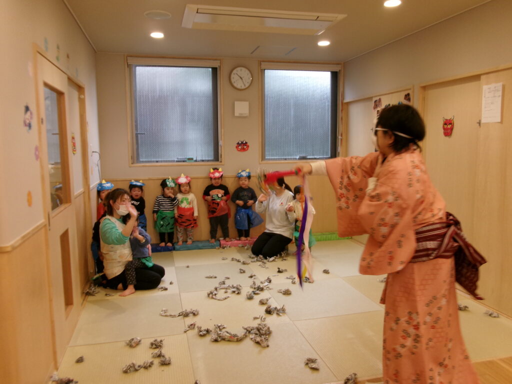 朝から、「今日は鬼がくるかも…」とソワソワしている様子の子どもたちでしたが…。