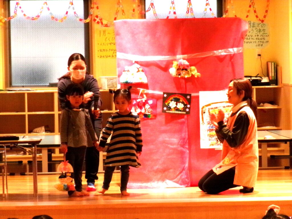 その後には、担当の先生から、ひな祭りのお話があったり、歌に合わせてパネルに人形などを登場させていました☆