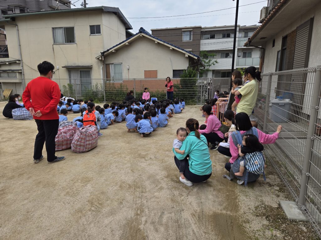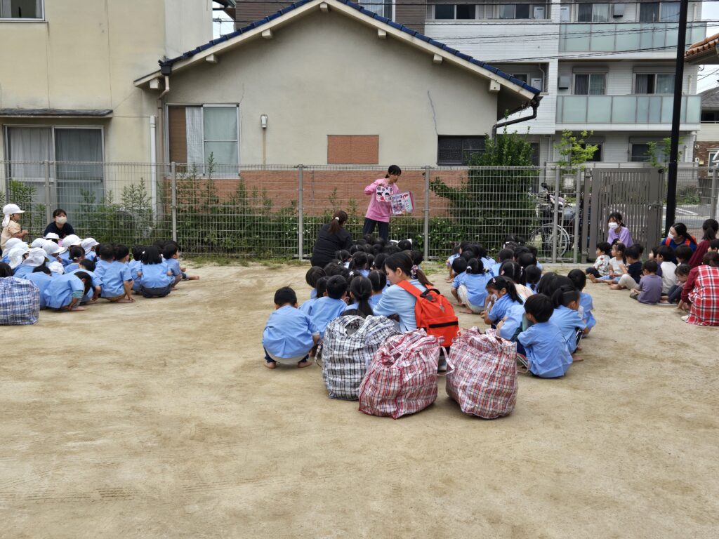 最後に園長先生から「一番守らないといけないものは何でしょう?1.おもちゃ 2.お金 3.いのち」という質問に、ほとんどの子どもたちが「いのちー!」と答えていましたよ。
