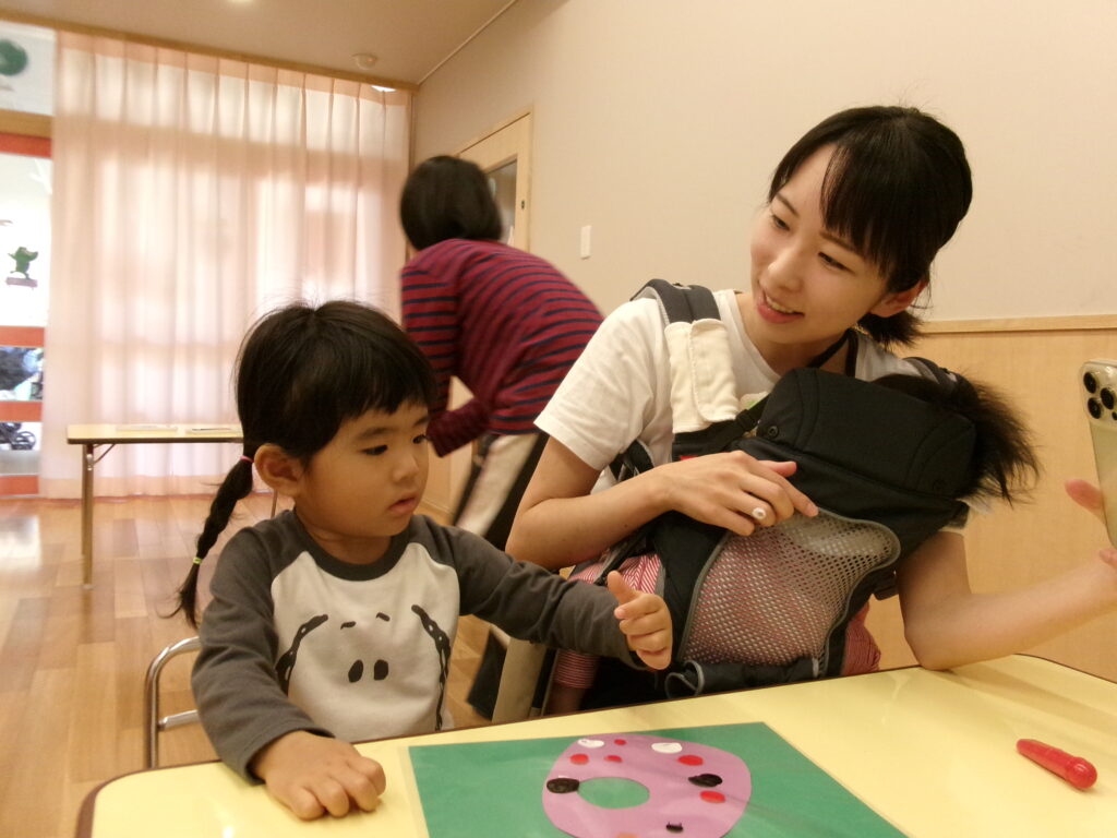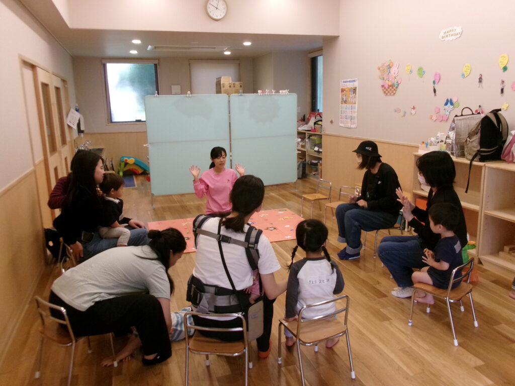 初めにお母さんと手遊びをして