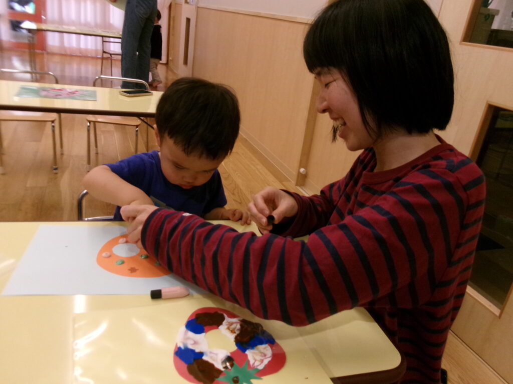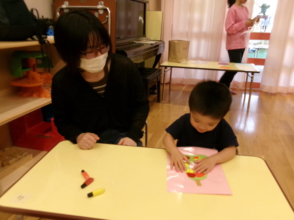 初めはお母さんと一緒に、絵の具を出したよ😊