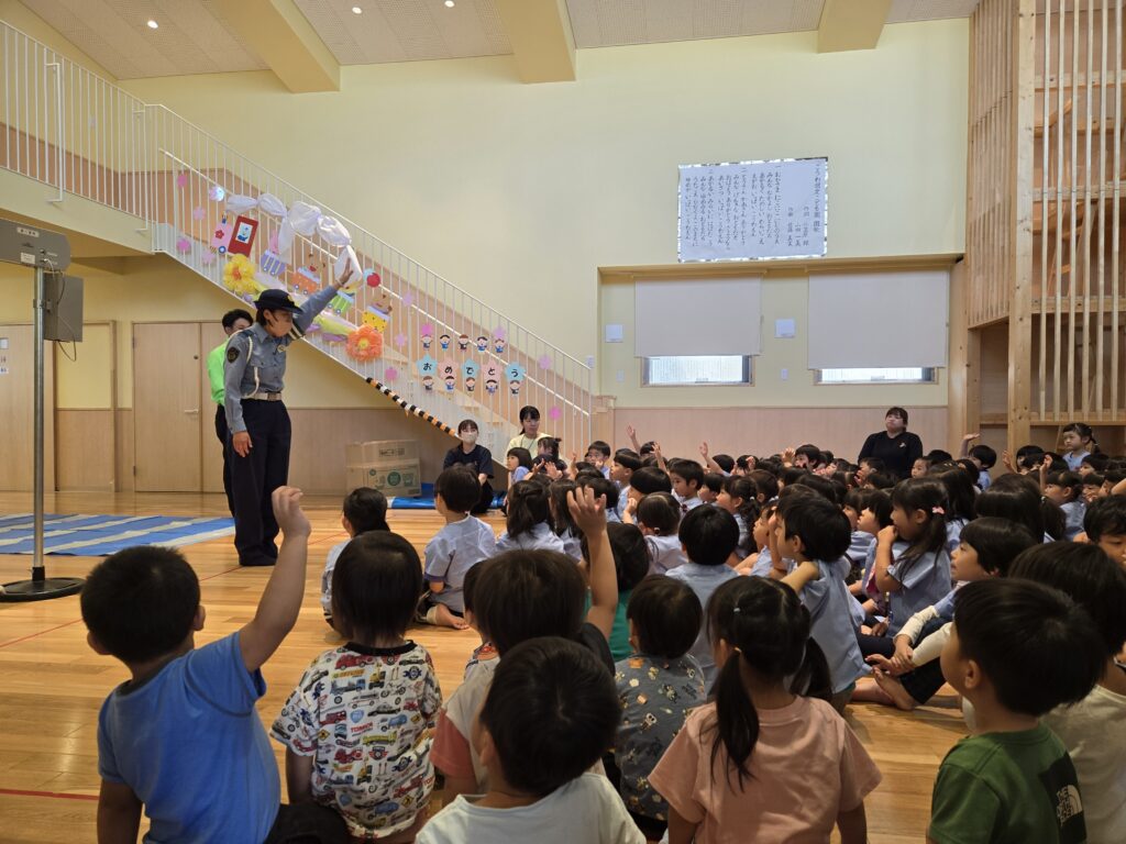自動車学校の先生や地域の係の方、海田警察署の方が来てくださり、横断歩道の渡り方など教えてくださいました。