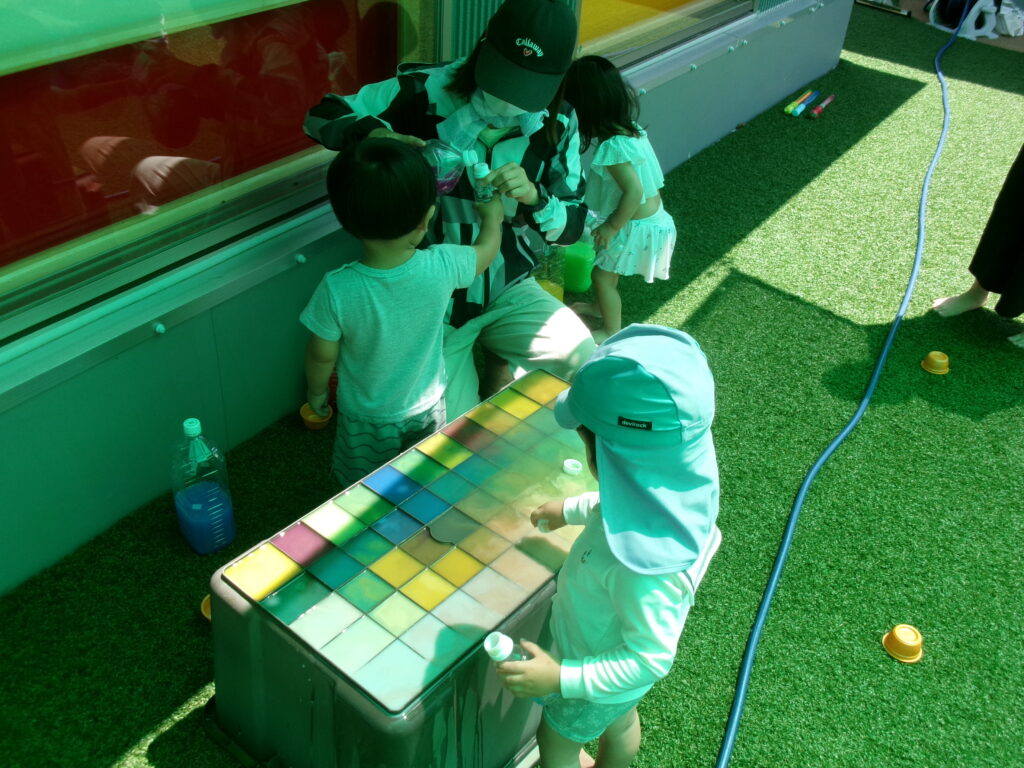 BOXの裏に四角いマスがあったのを発見した子どもたち。