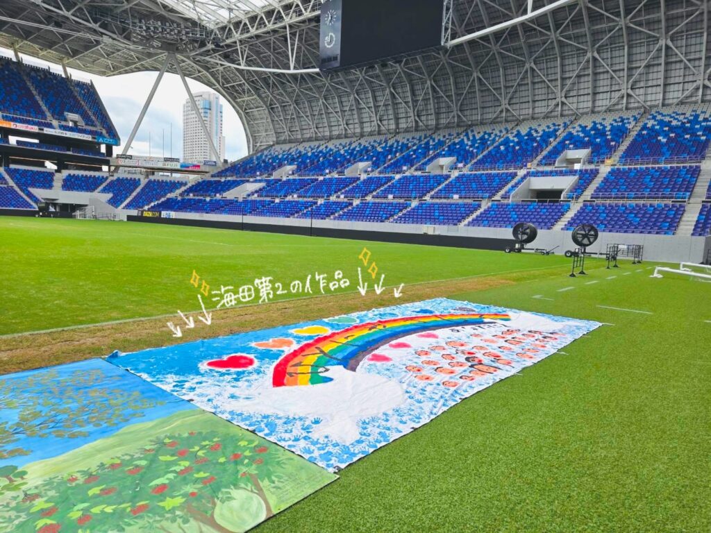 また、先日22日(金)には、エディオンピースウイング広島でも展示していただきました。