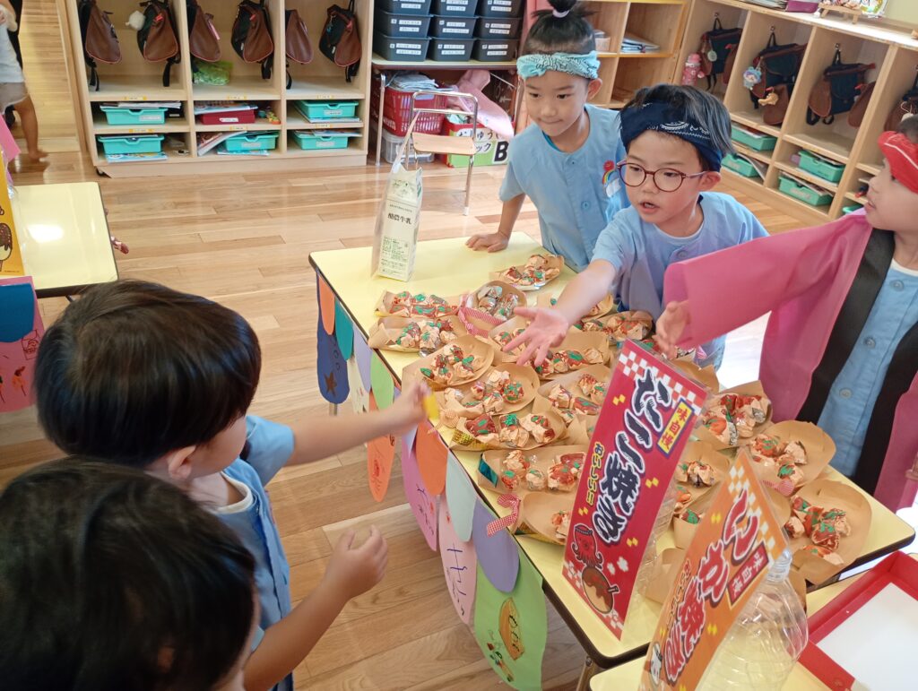 そして、お誕生日会の後には、子どもたちが楽しみにしていた夏祭りが開催されました。