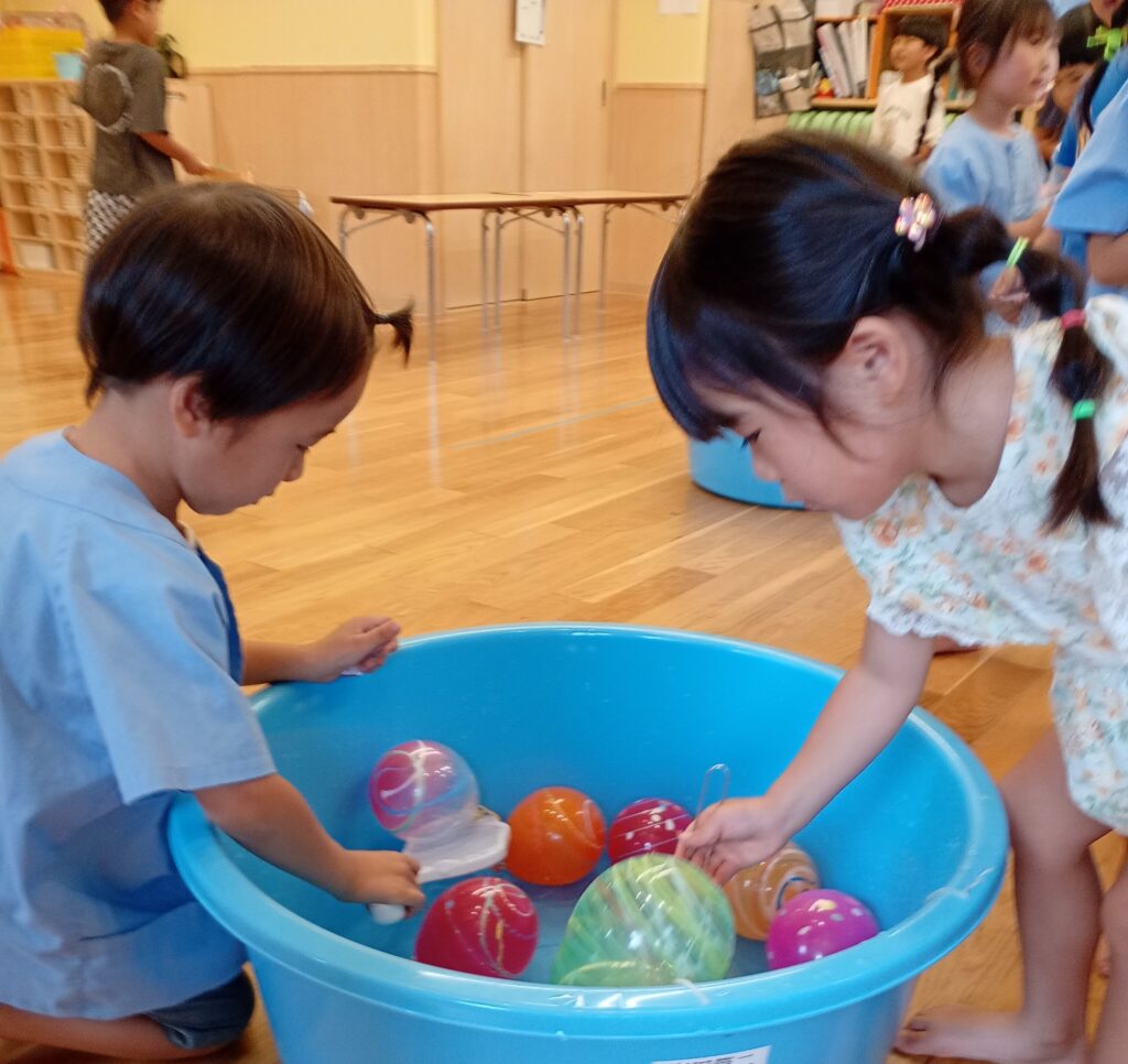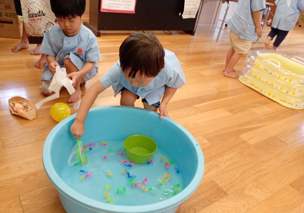 食べ物があったり、ヨーヨーつり・金魚すくいがあったり…と、それぞれの子どもたちが楽しんでいましたよ。(^^♪