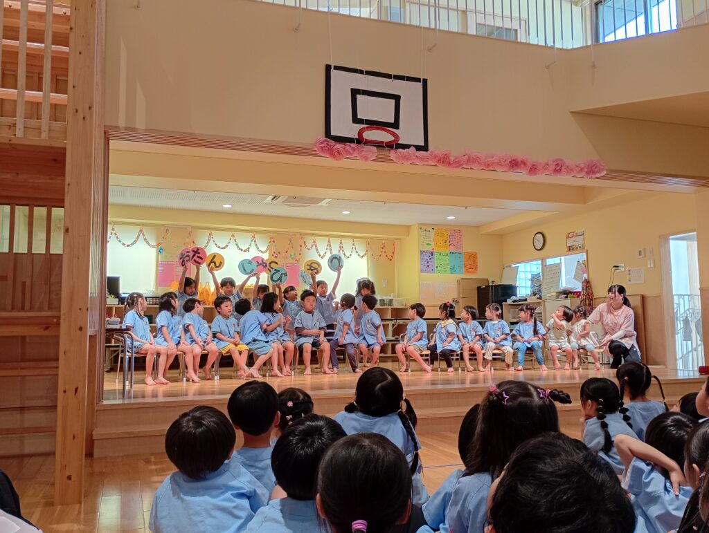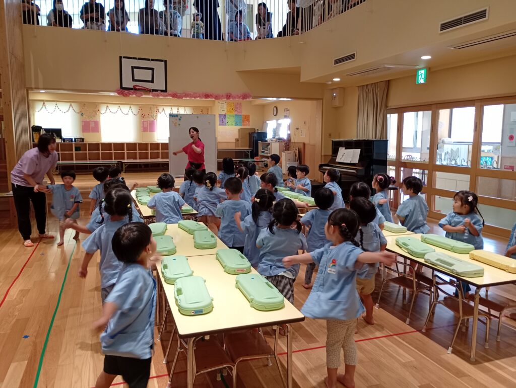 そして そして、お誕生日会が終わると、幼児の音楽参観日が始まりました。