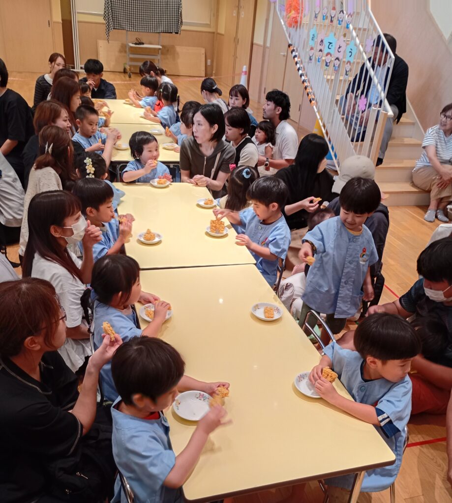 もも組の保護者の皆さまには、おやつの時間とお帰りの時間の様子をみていただき、おやつは一緒に食べていただきました。