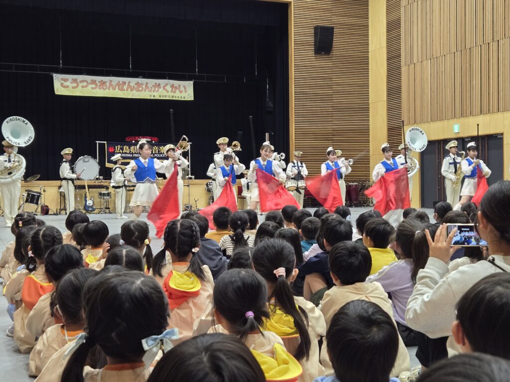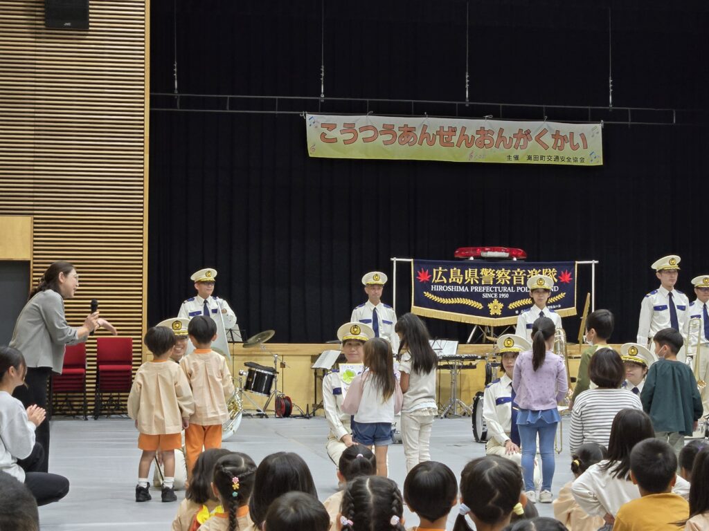 10月28日(火)に、海田町の年長児のみ招待された、交通安全音楽会に行ってきました。