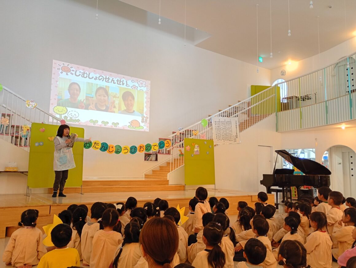 3月5日(火)に3月のお誕生日会がホールで行われました。今月のお誕生児のお友だちは11人、その11人のお友だ…
