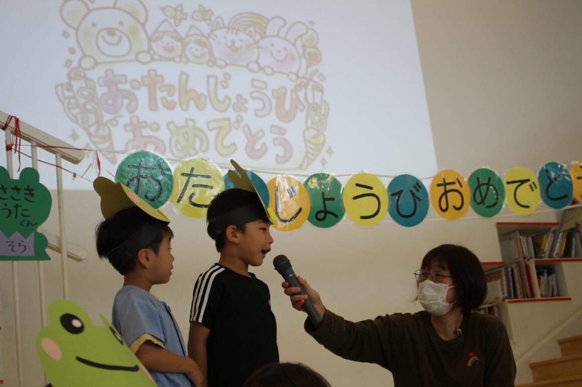11月14日(火)にお誕生日会がありました。1歳児、2歳児クラスのお友だちはみんなからお祝いしてもらい 何だ…