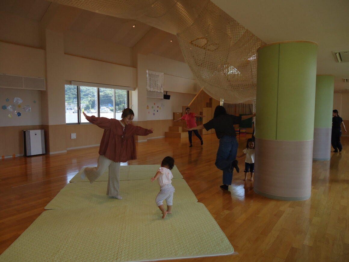 9月24日(火)10時~ホールで予約制の園庭開放「おひさまくらぶ」がありました。今月は体を動かして遊ぼう!!…